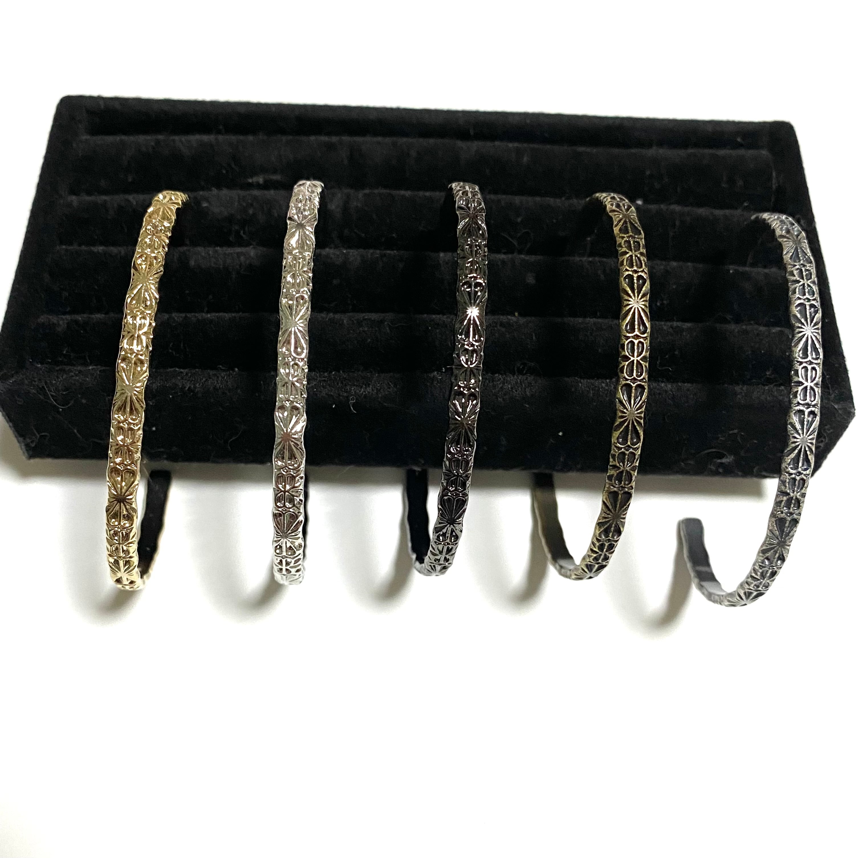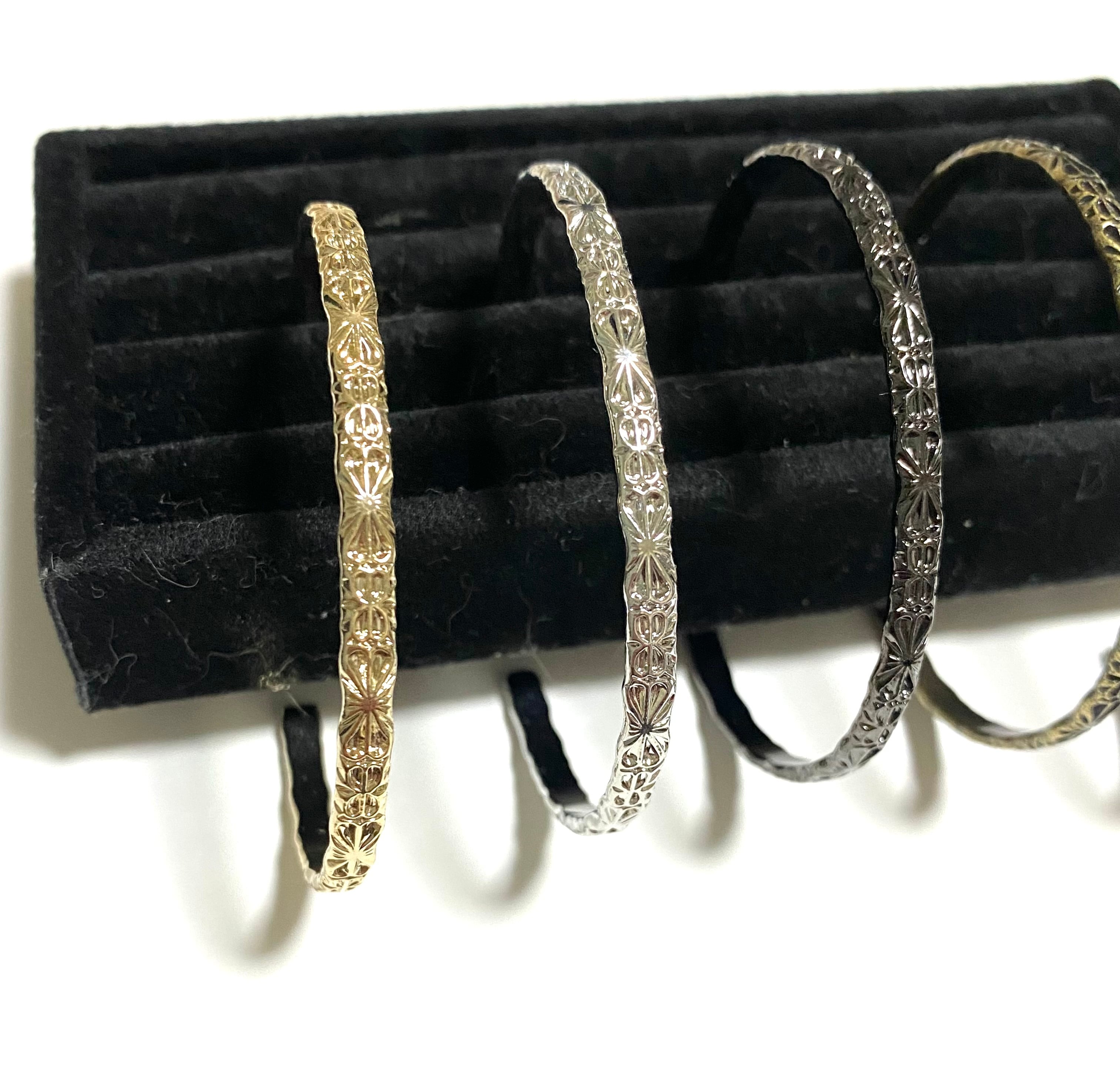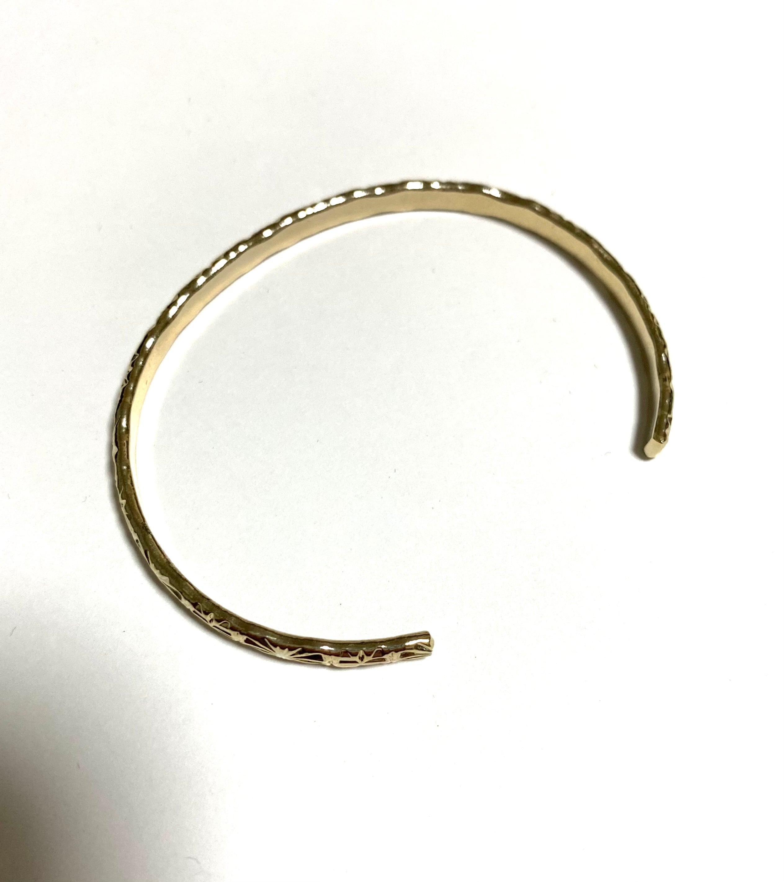 ダマスク柄の真鍮線を曲げた普段使いや重ね付けに最適なバングルです。
