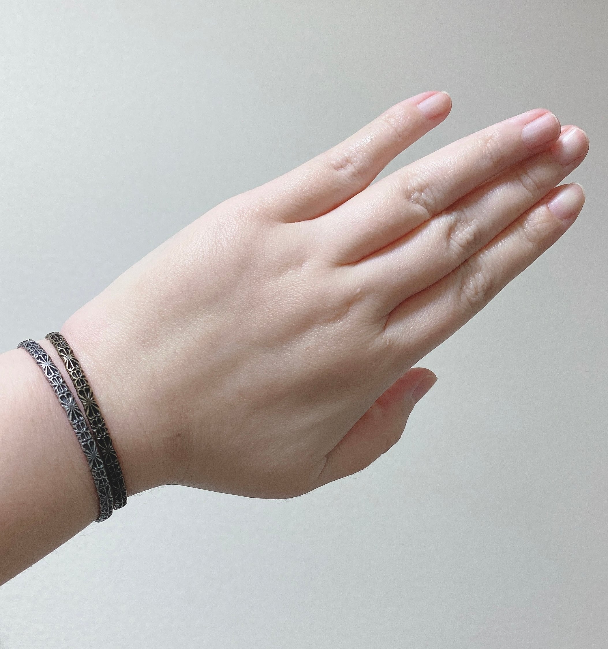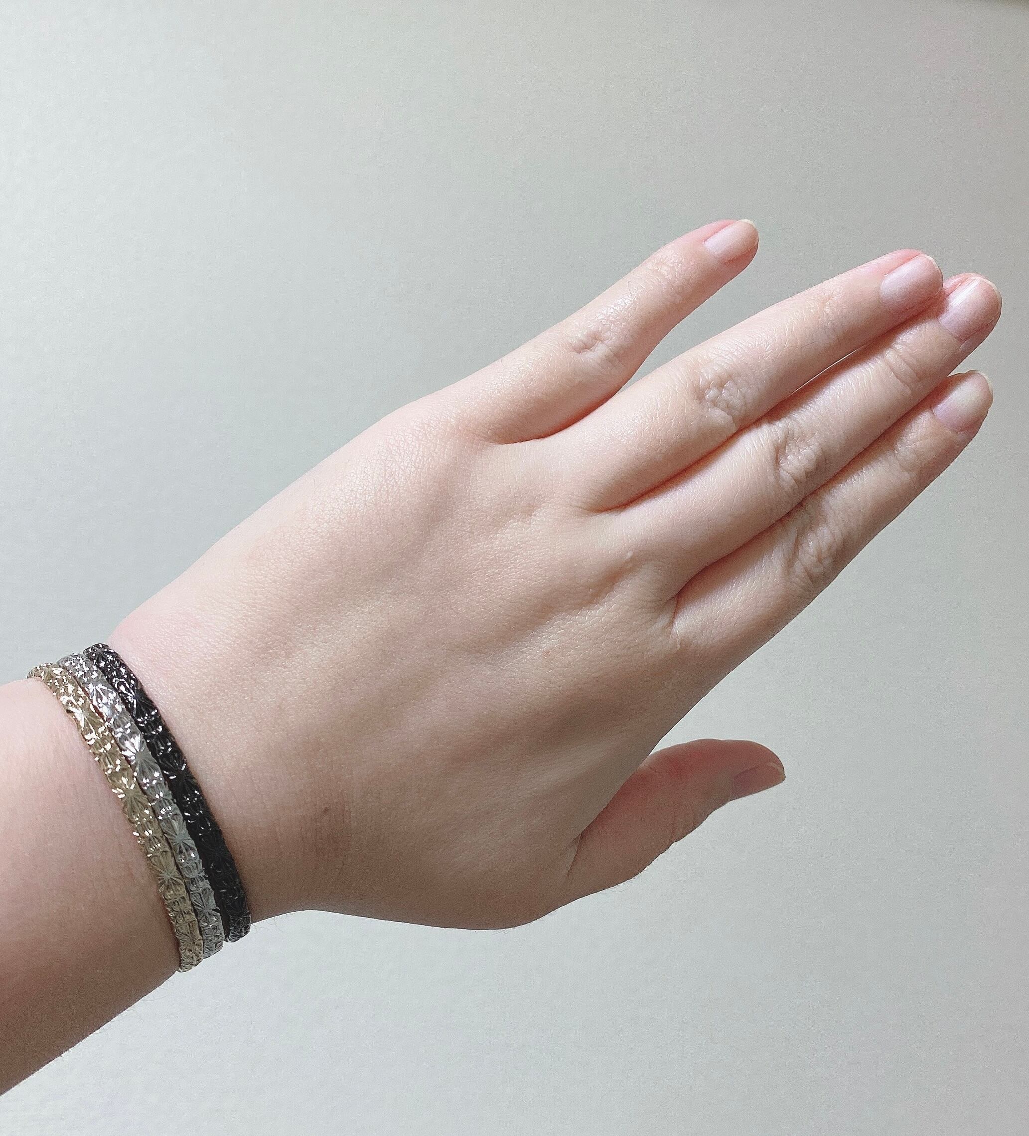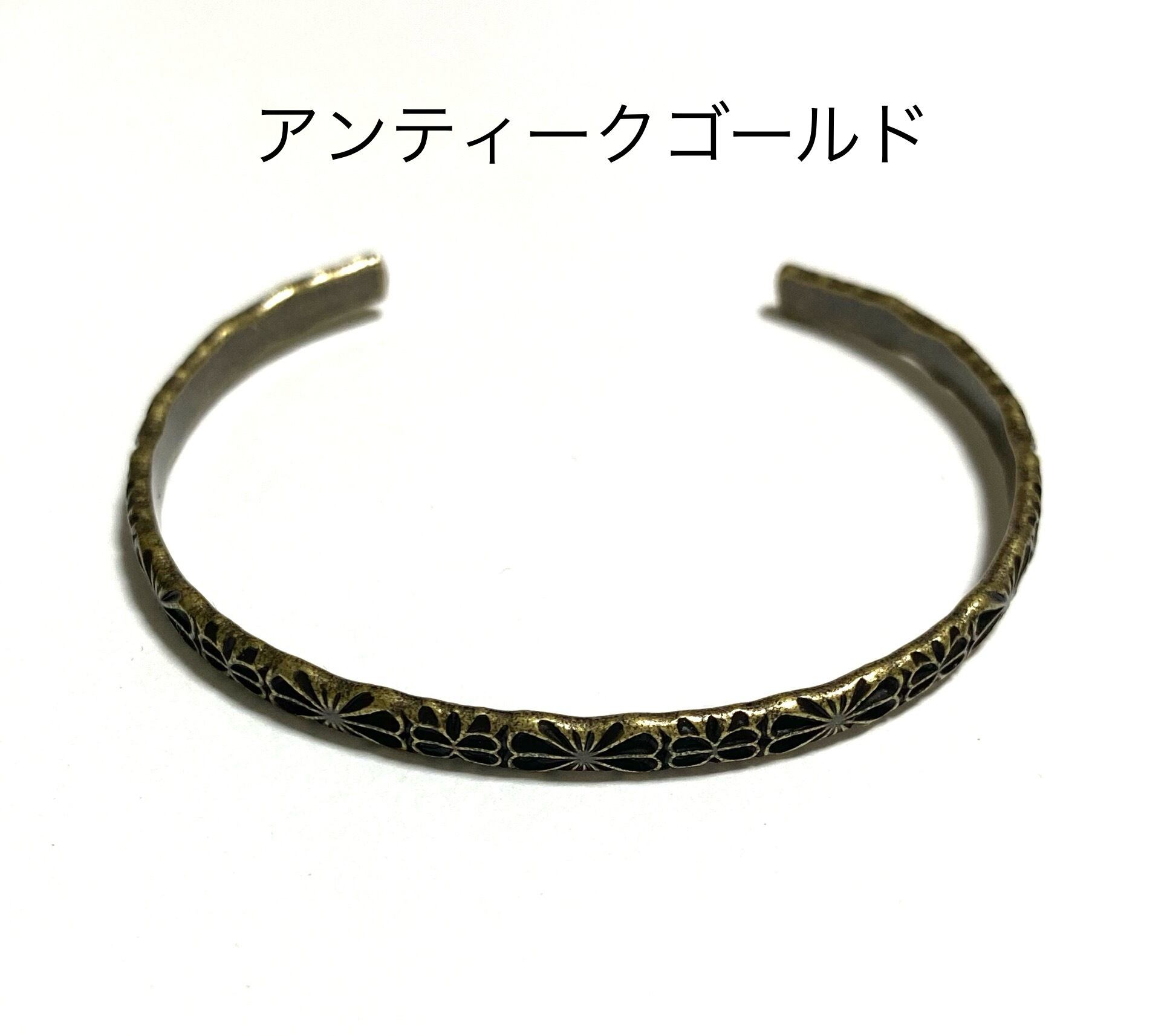 ダマスク柄の真鍮線を曲げた普段使いや重ね付けに最適なバングルです。