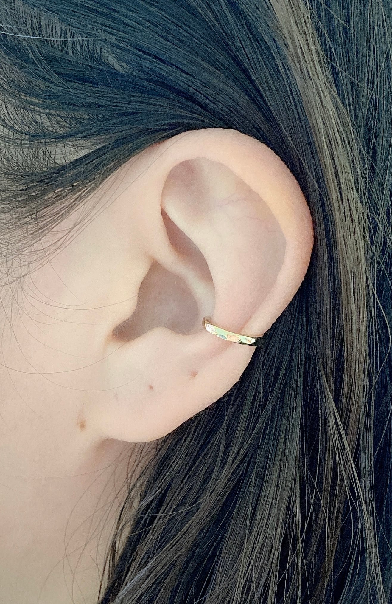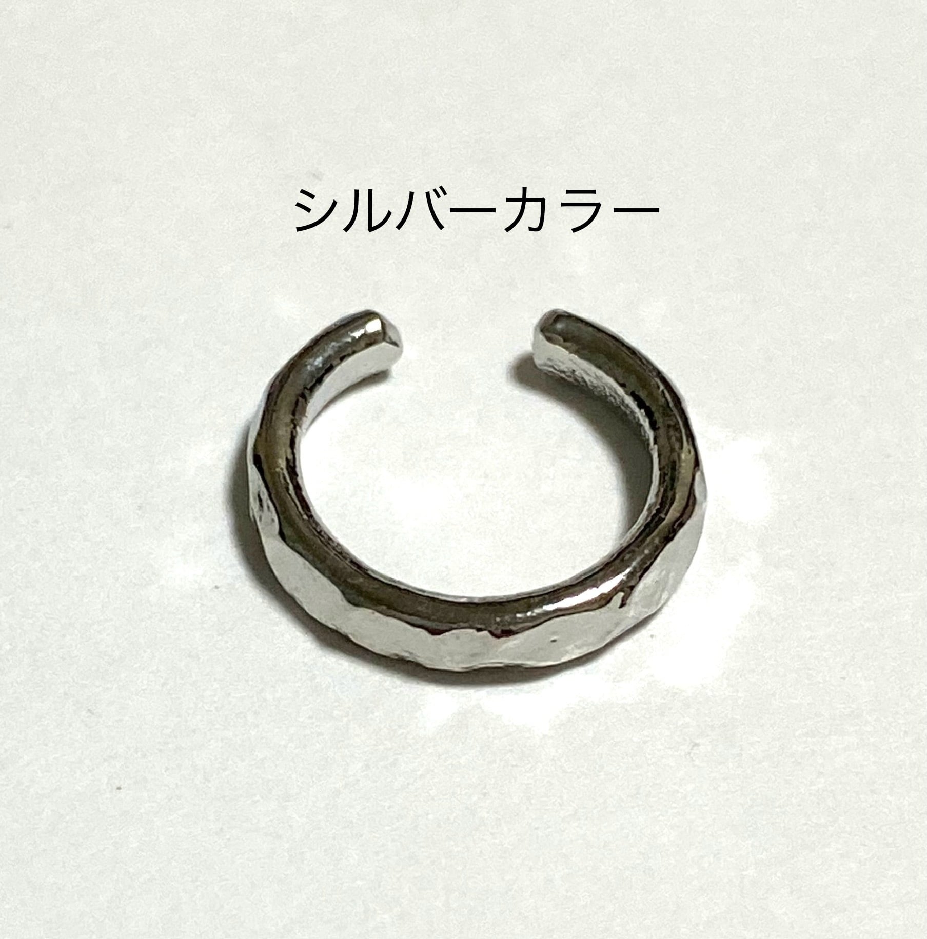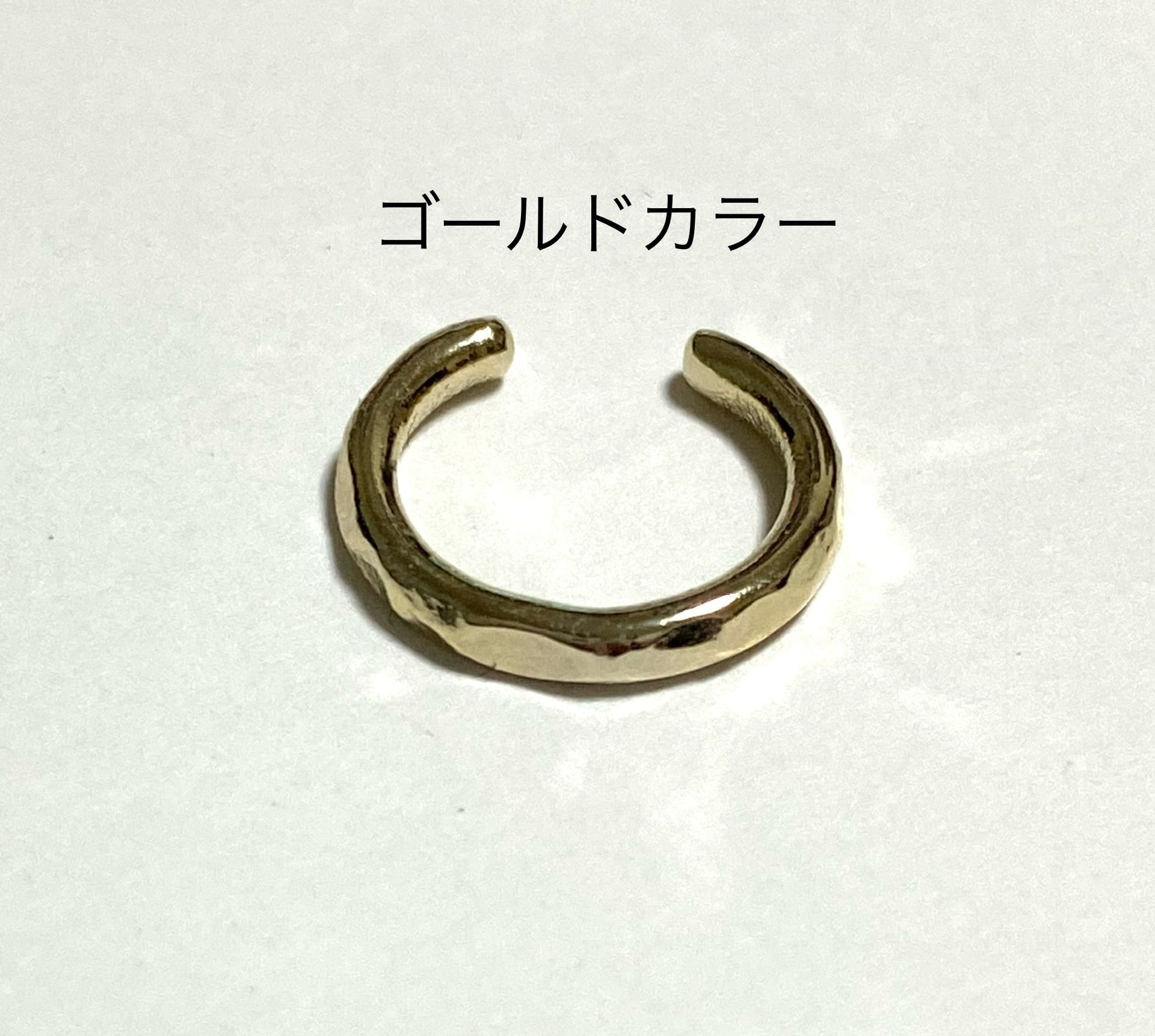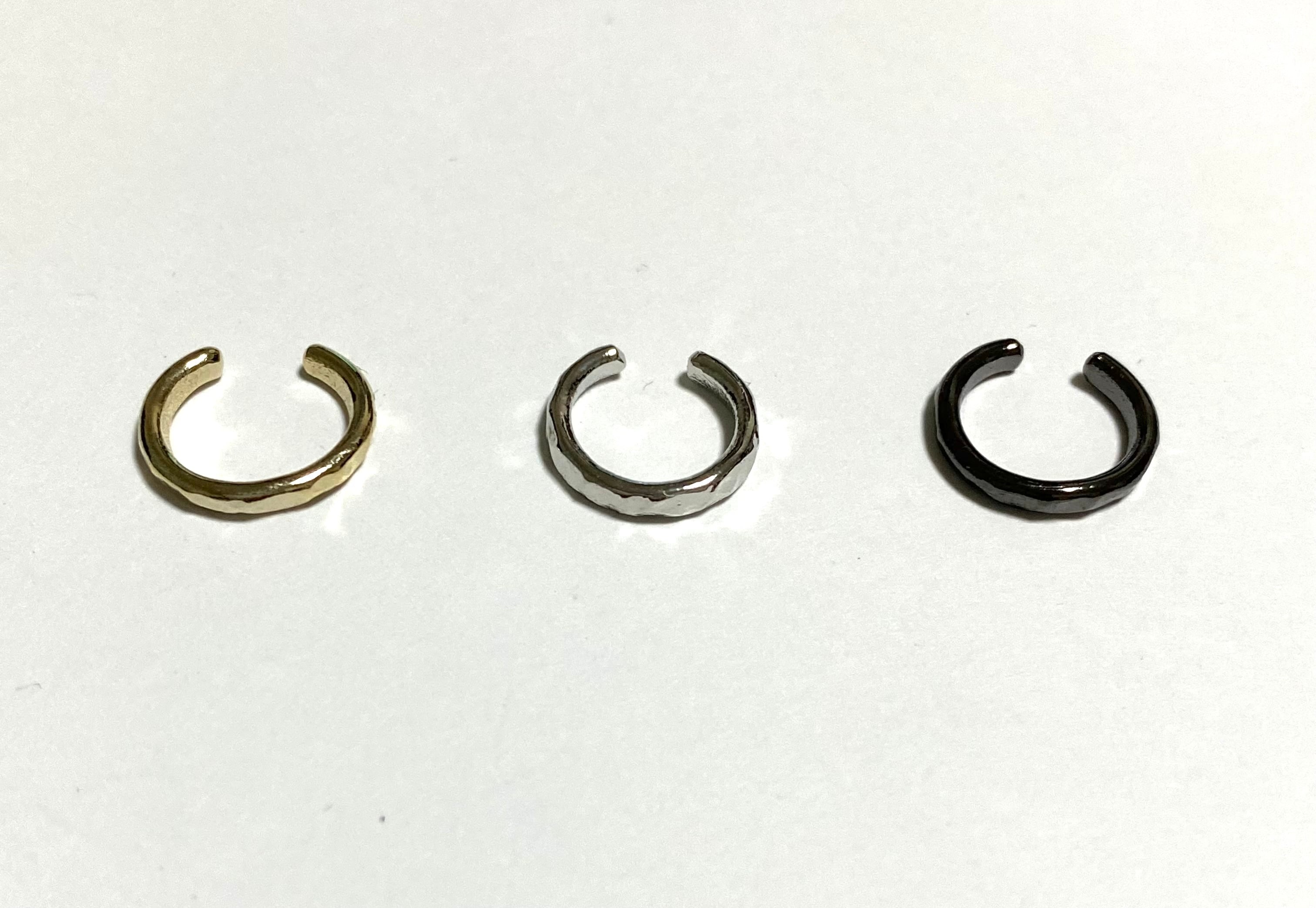 槌目柄の真鍮線を曲げた普段使いに最適イヤカフです。