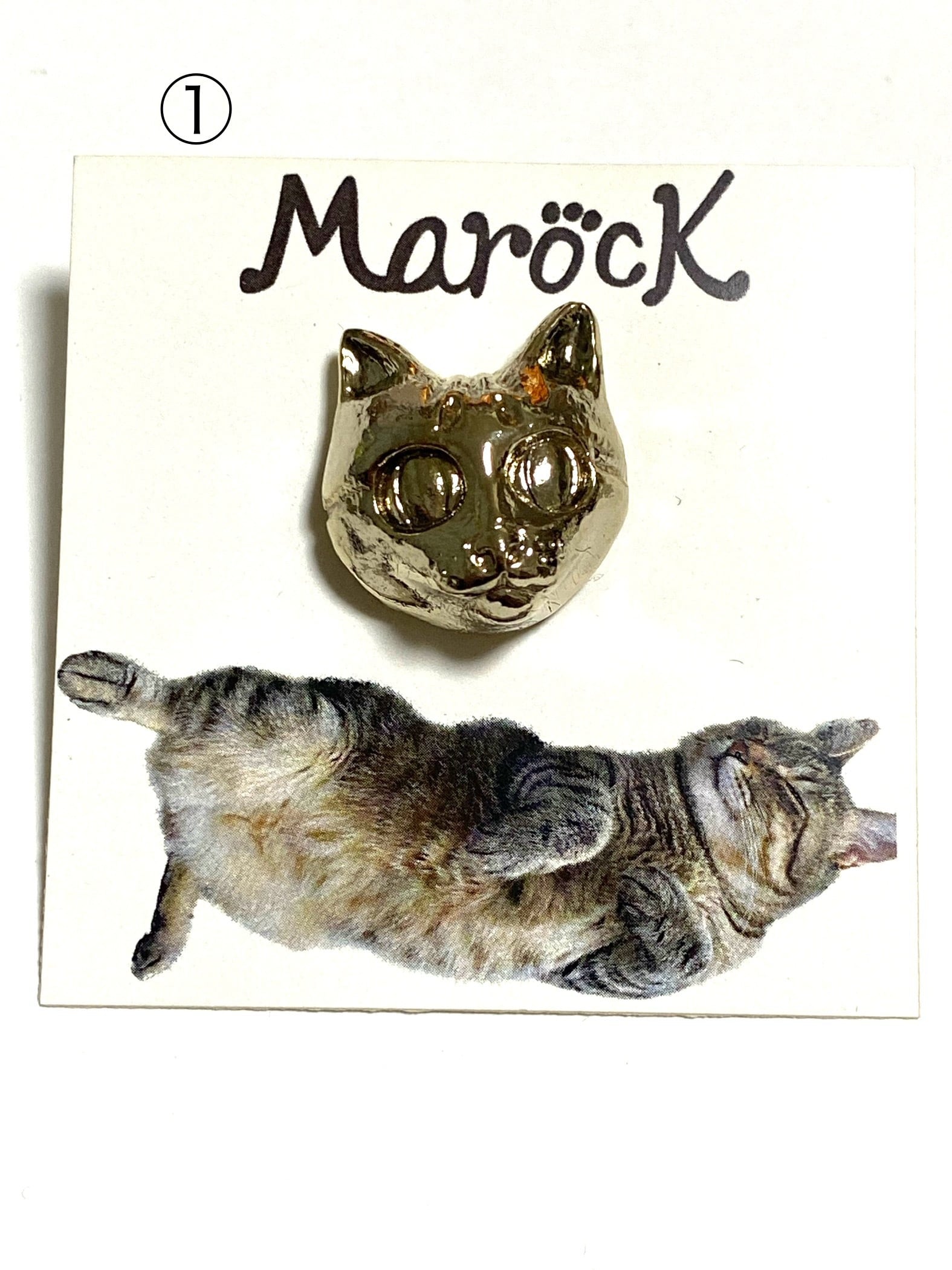 我が家のアイドル顔面偏差値天才SSRハイパープリティ猫のまろっく様のご尊顔をデフォルメさせていただいたオリジナルデザインのピンバッジです。