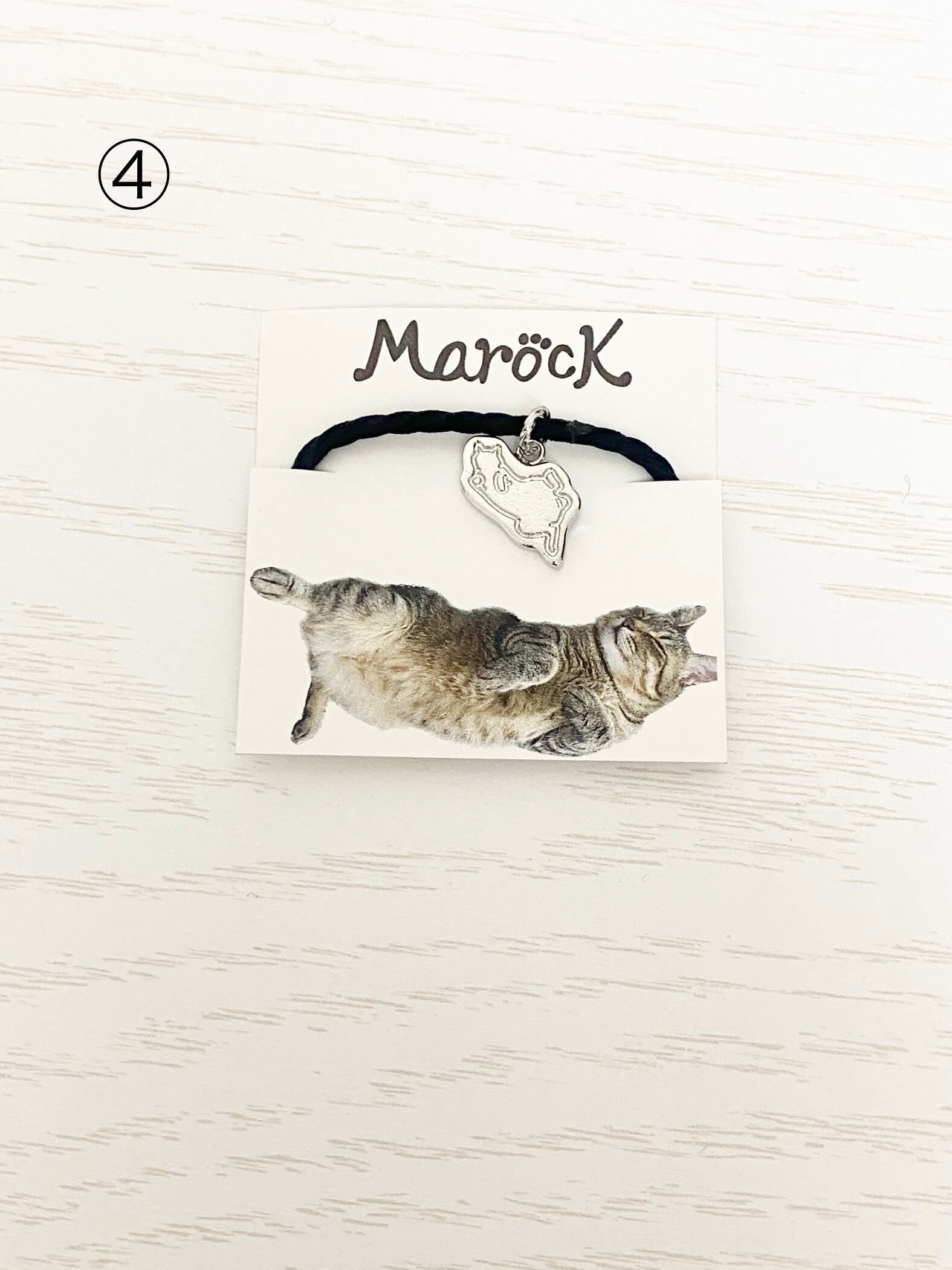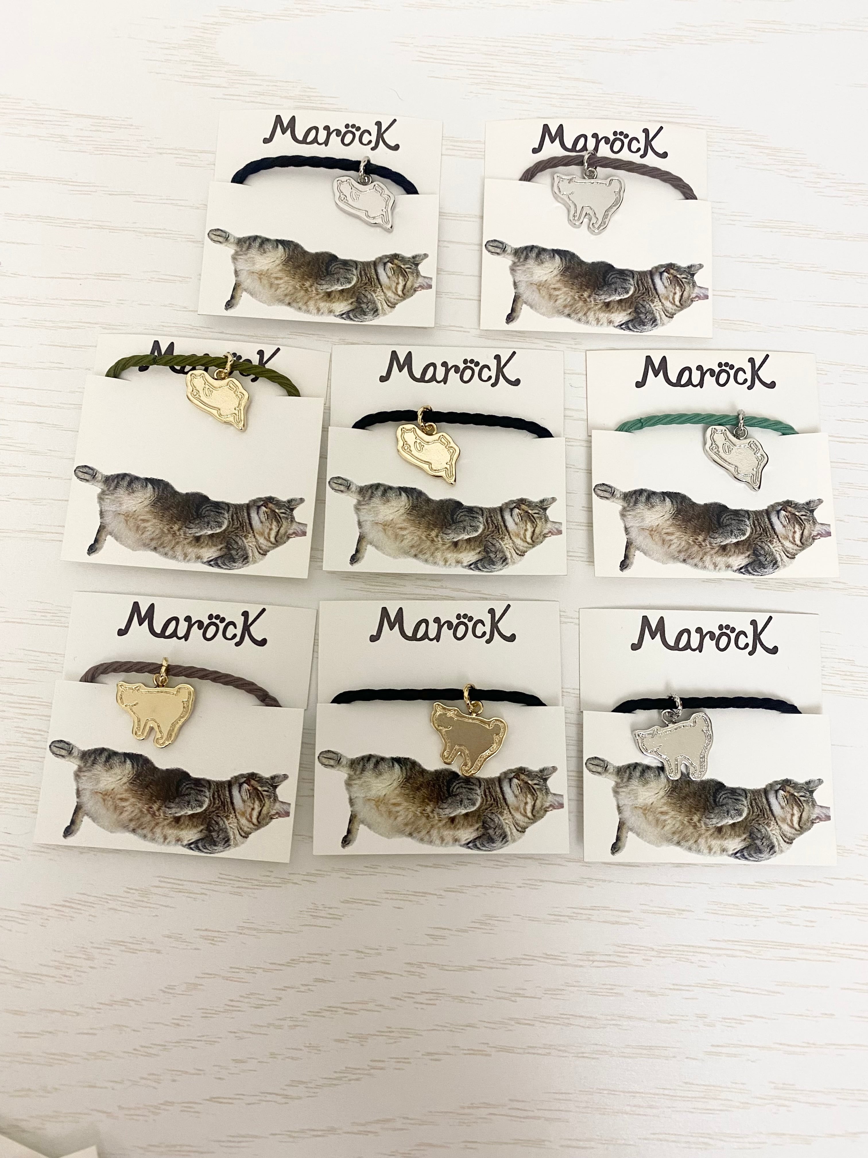 我が家のアイドル顔面偏差値天才SSRハイパープリティ猫のまろっく様の可愛いポーズのシルエットチャームがついたミニヘアゴムです。