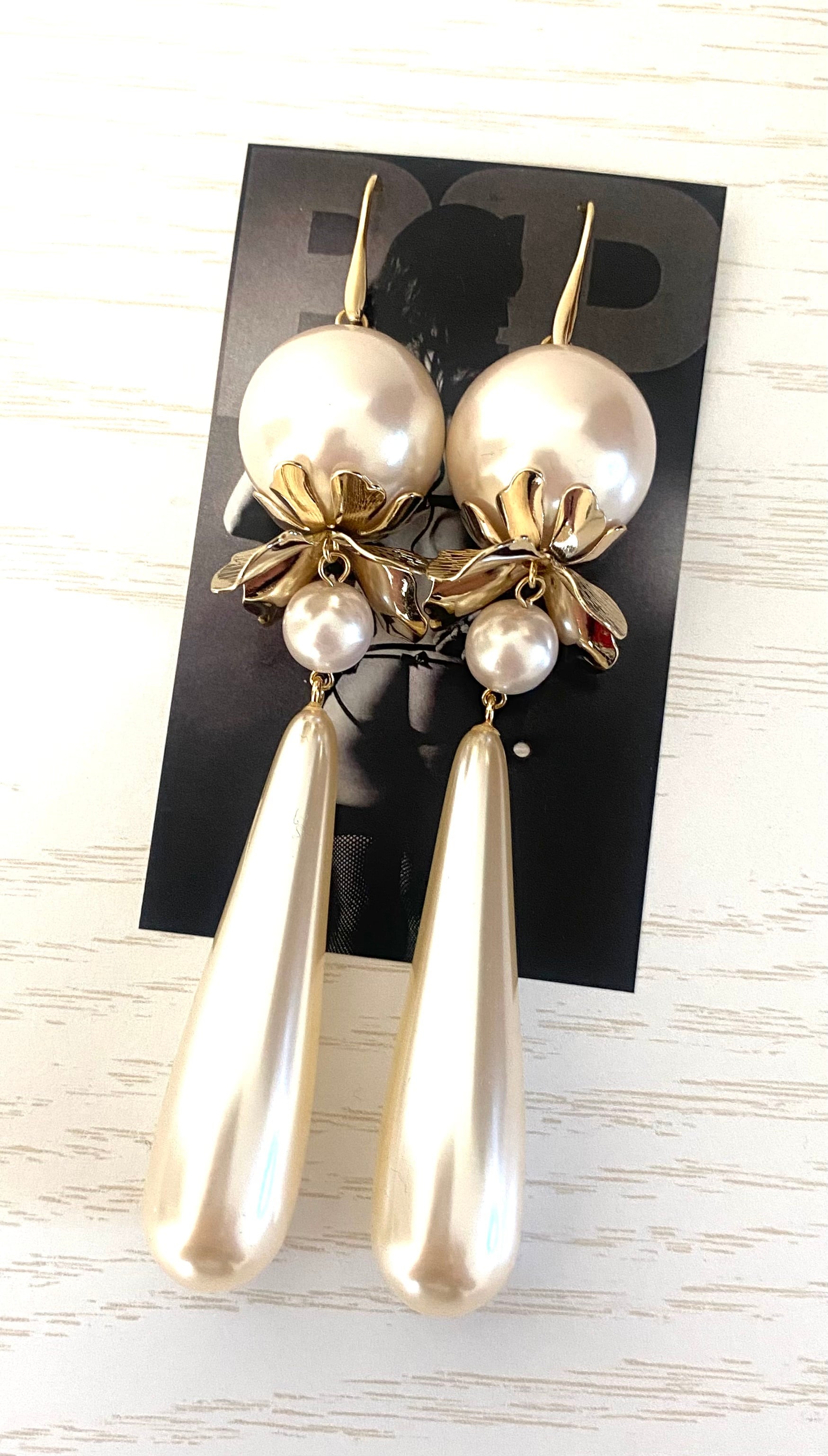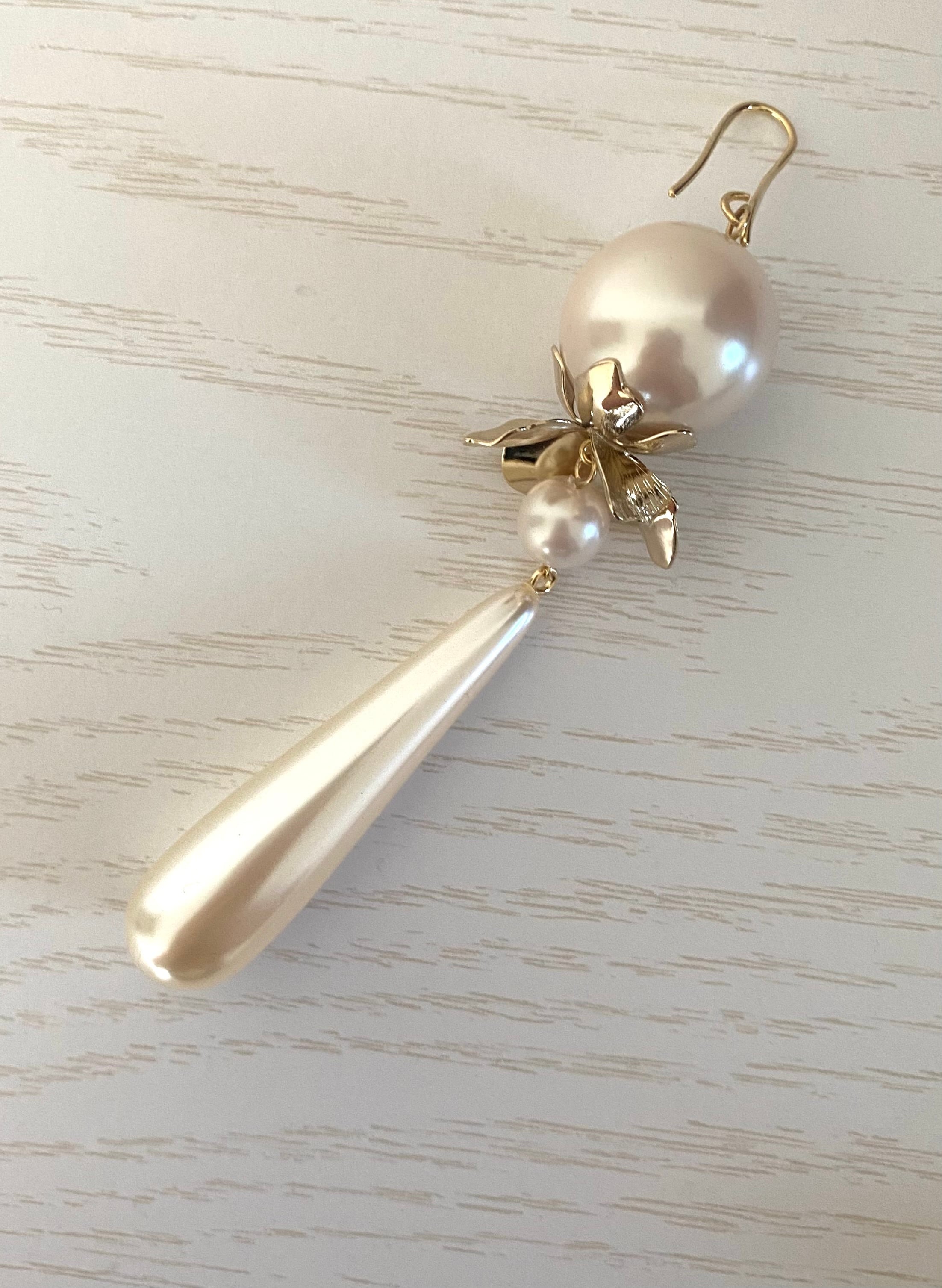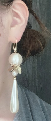 長さ70mmの大粒ドロップパールを使用したボリュームある豪華なピアスです。