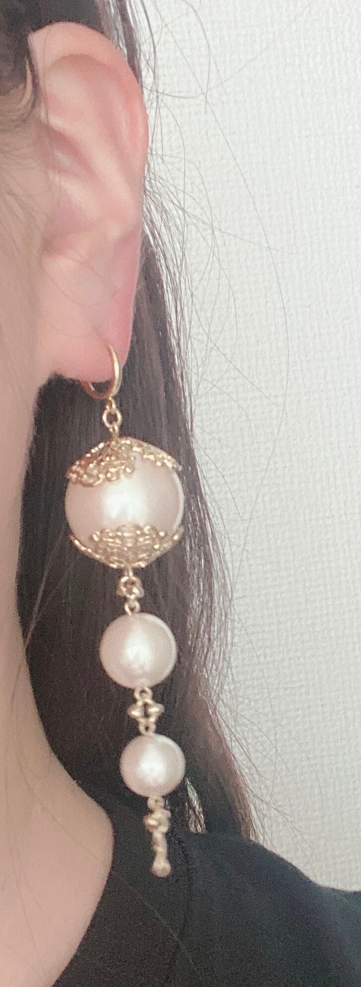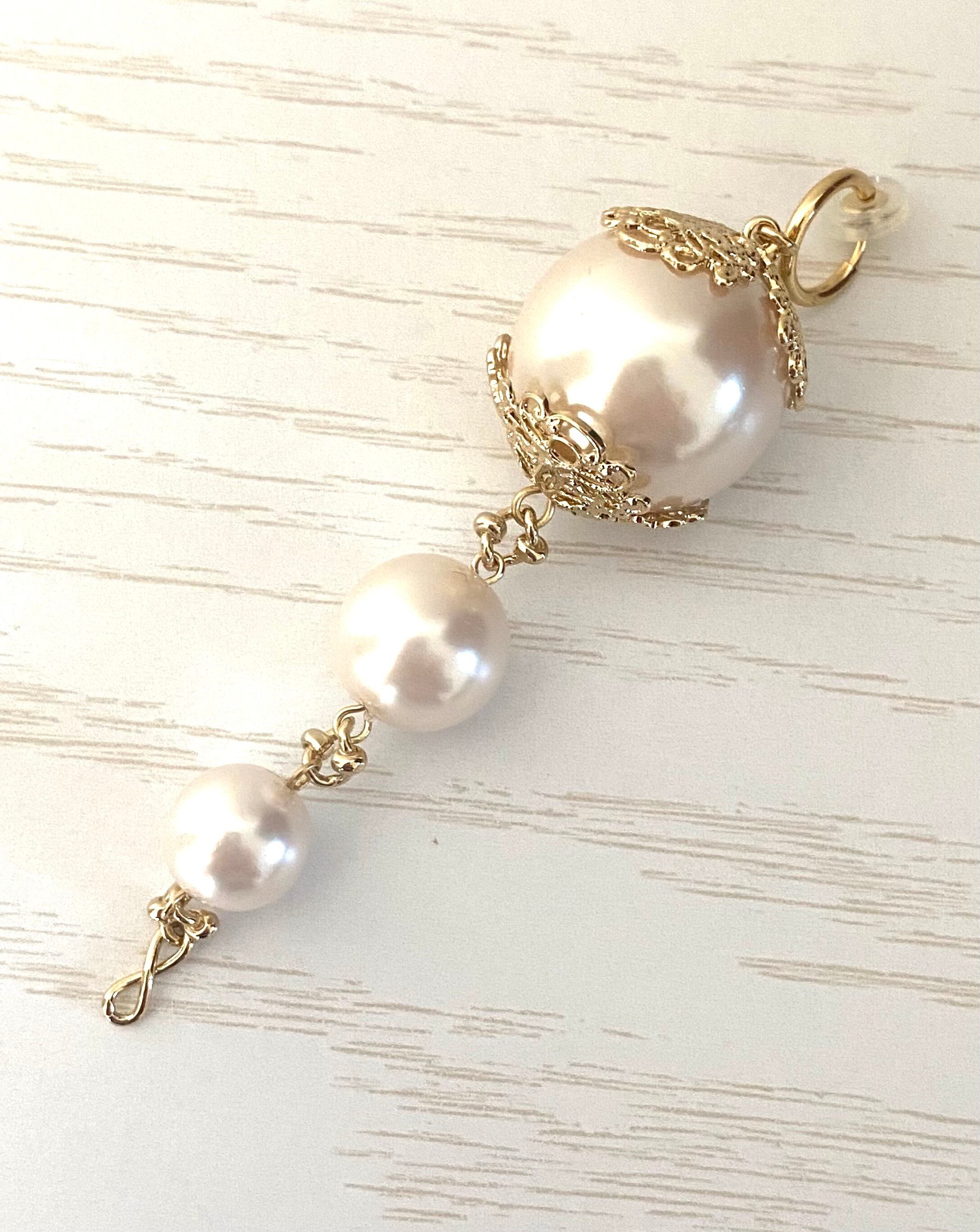最大22mmの大粒パールを使用したボリュームある豪華なラインイヤリングです。