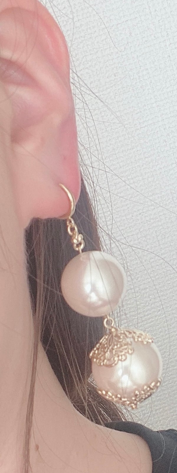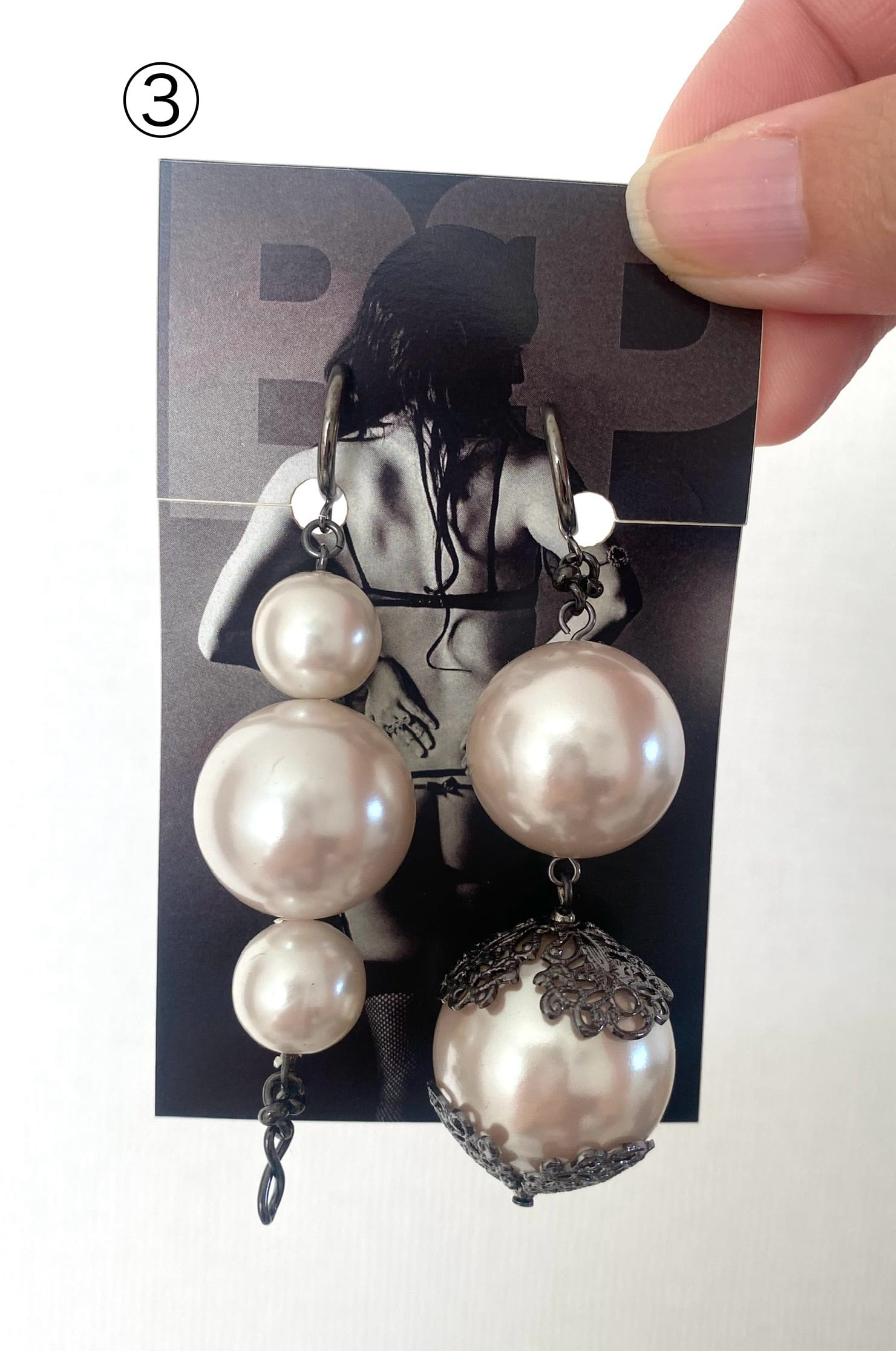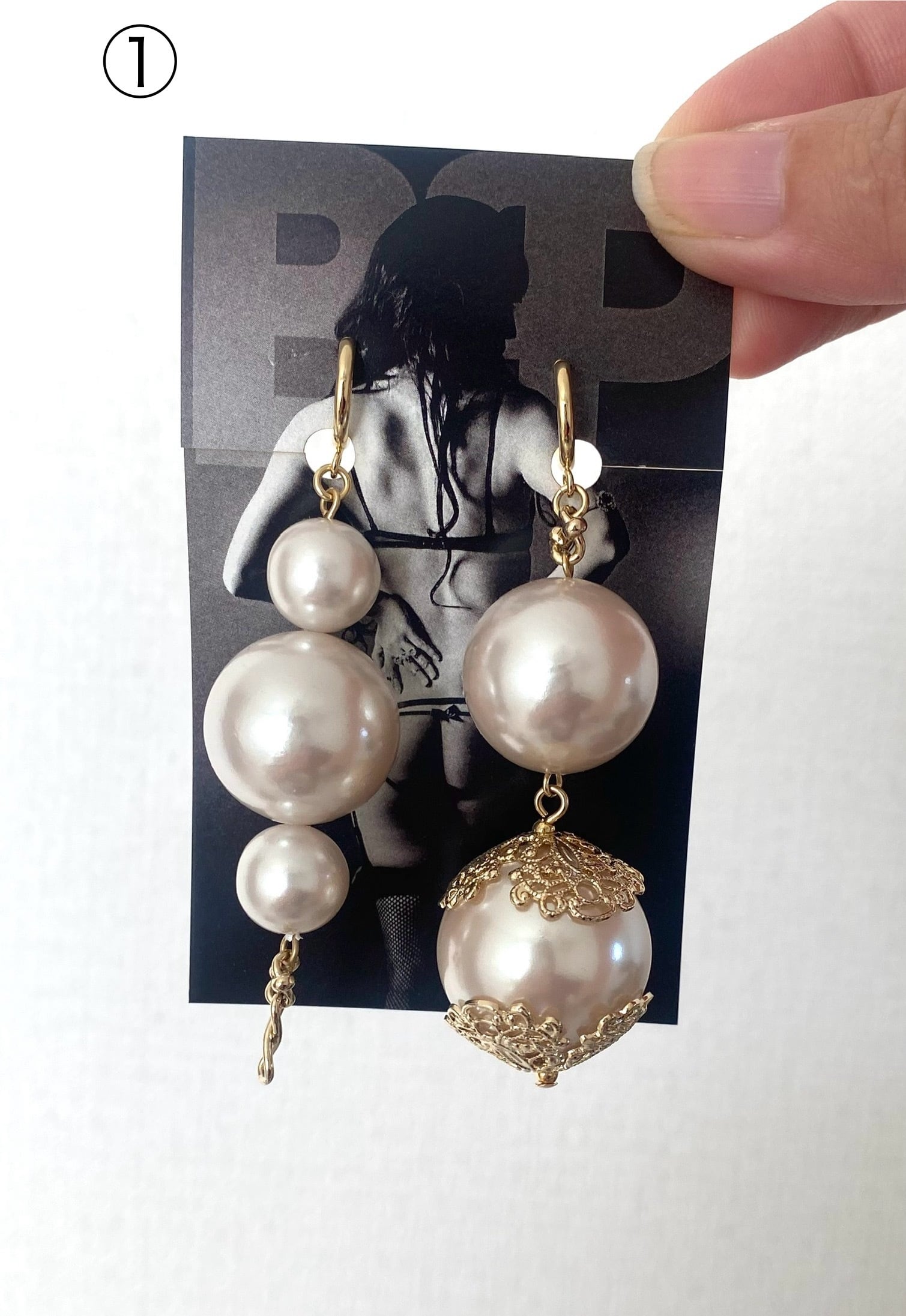 最大22mmの大粒パールを使用したボリュームある豪華なアシンメトリーイヤリングです。