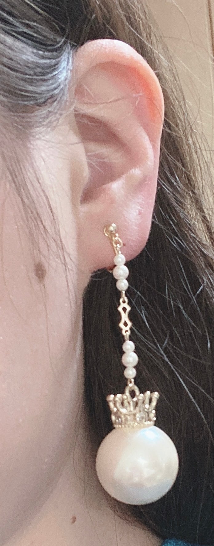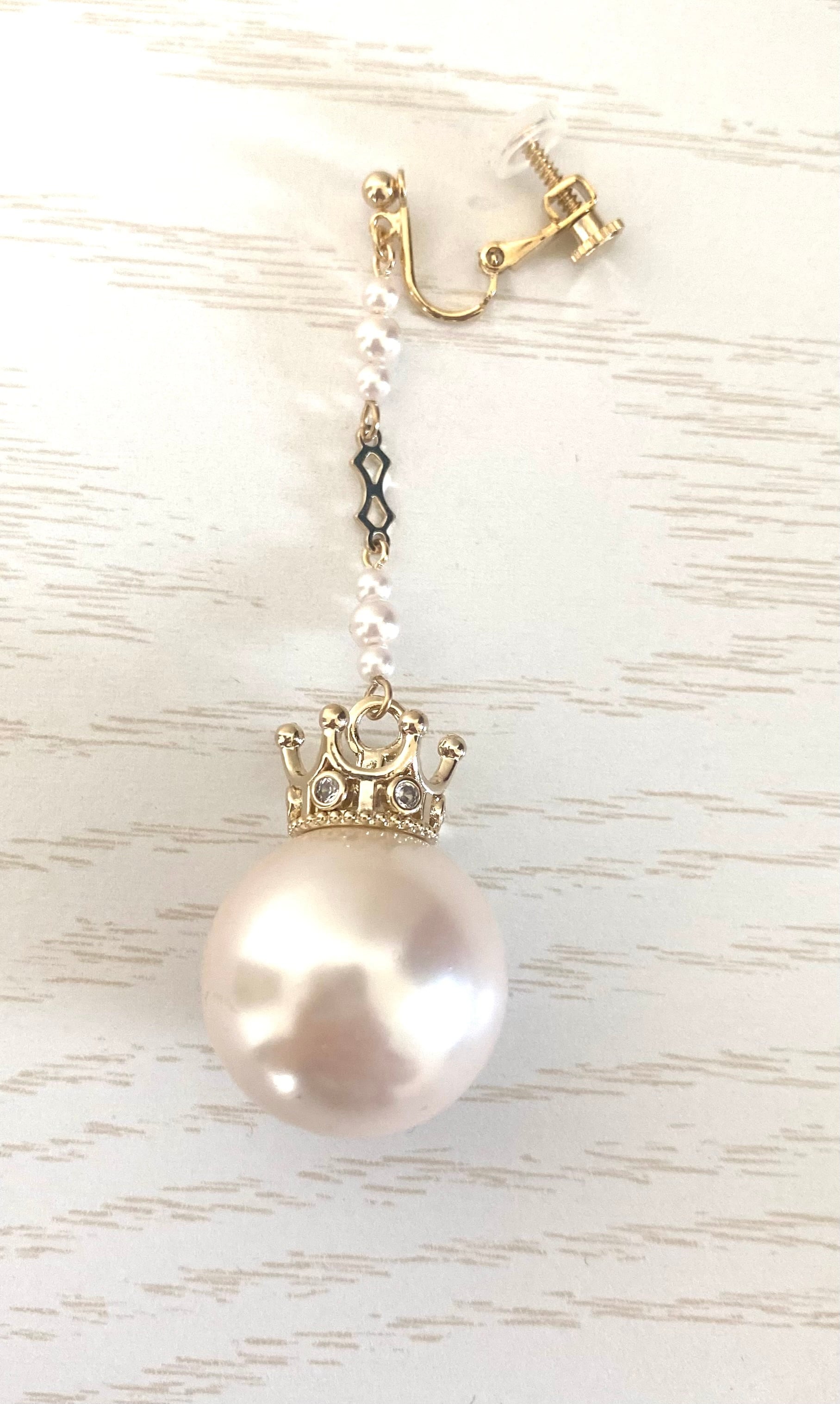 最大22mmの大粒パールにクラウンを乗せたボリュームあるイヤリングです。