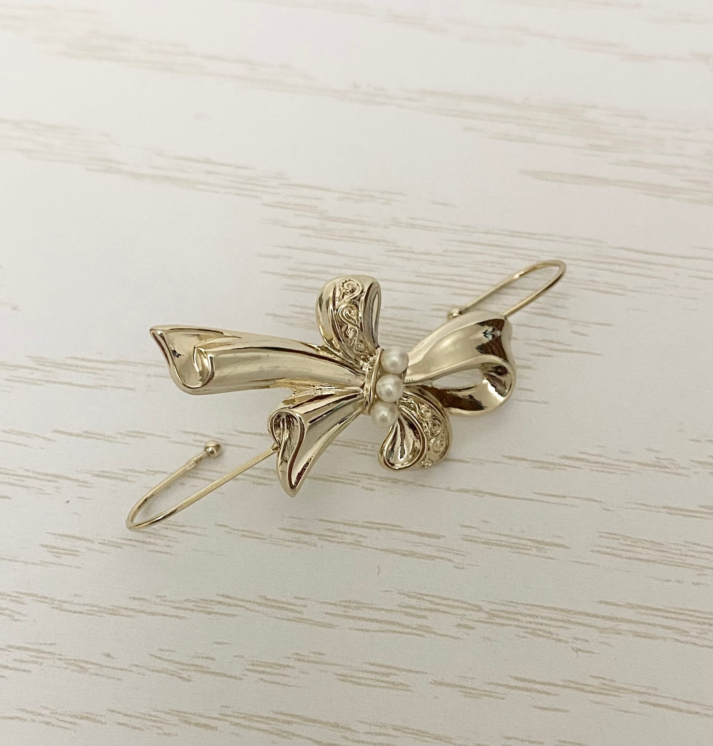 ボリュームあるリボンパーツを使用したスティックイヤカフです。
