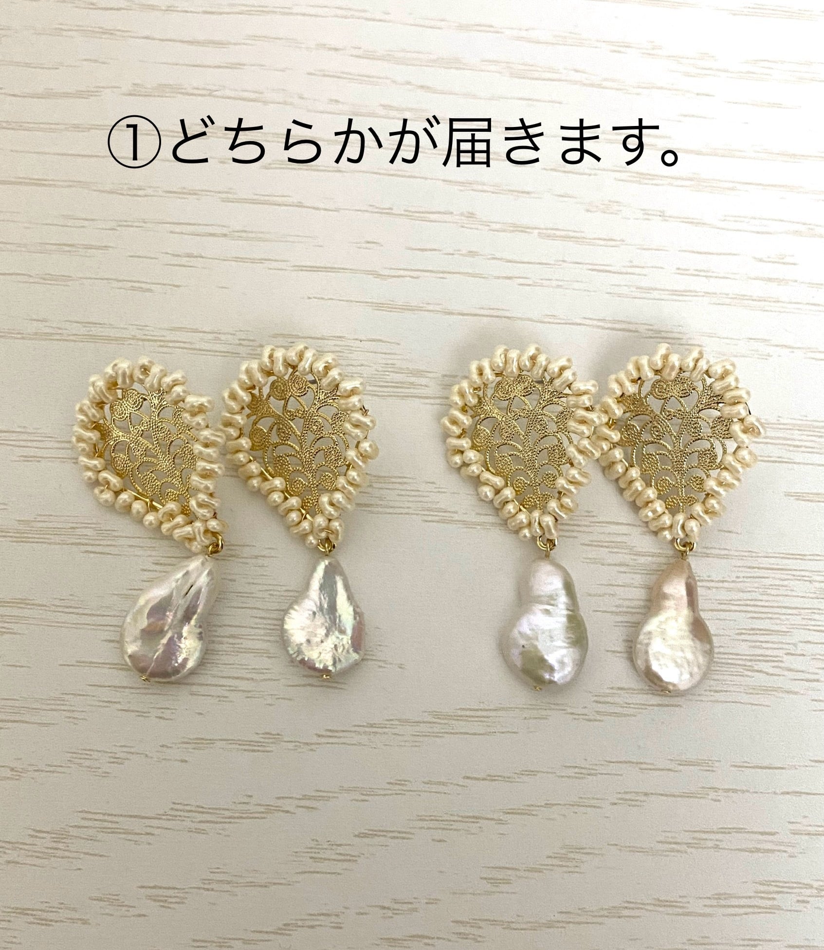 真鍮+アレルギー対応メッキ+①淡水パール②ガラス