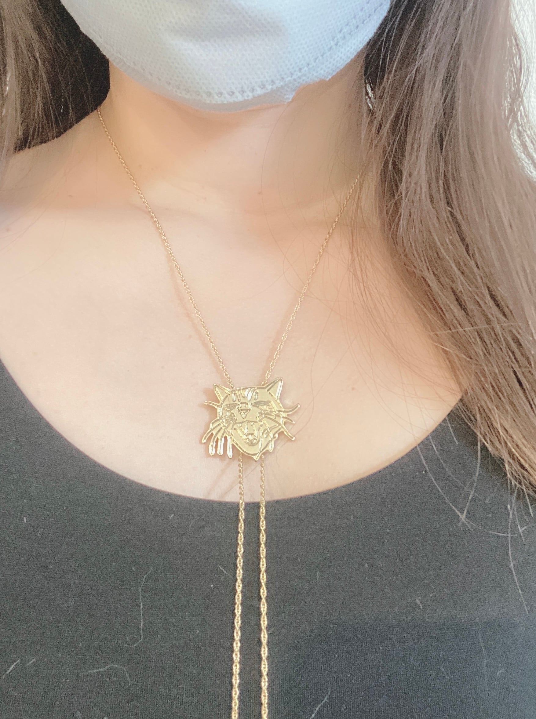 我が家のアイドル顔面偏差値天才SSRハイパープリティ猫のまろっく様欠伸姿をモチーフにしたオリジナルデザインのループタイです。
