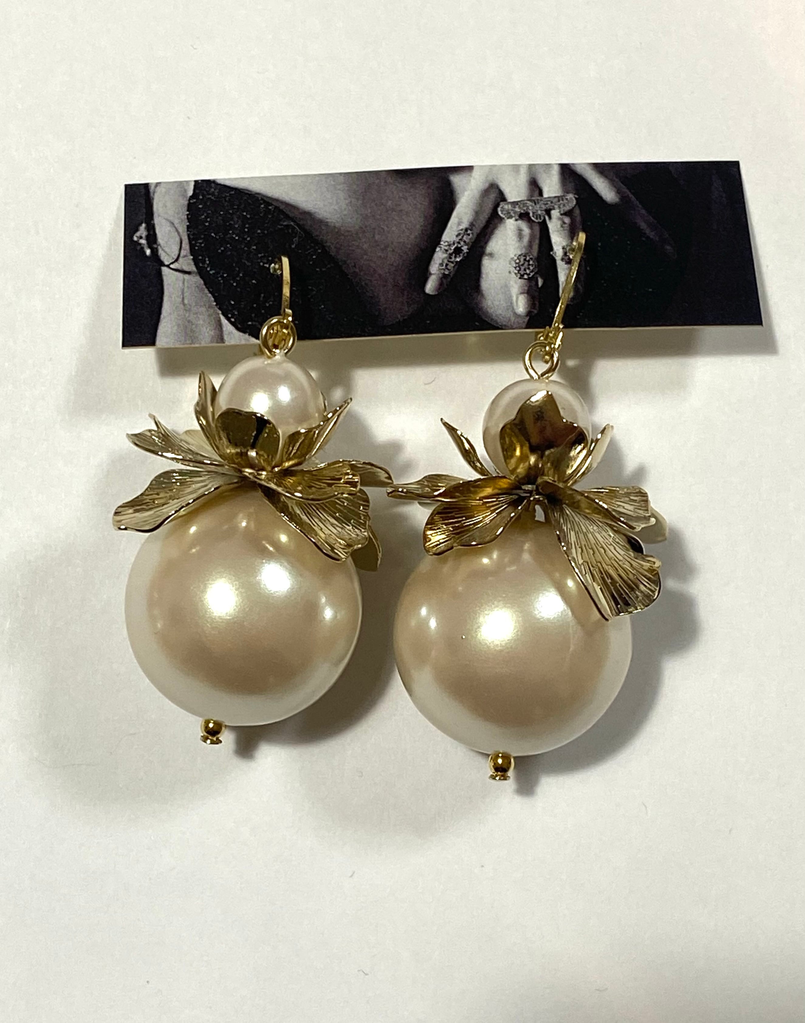 フラワーバドデカパールポイントピアス(ペア)