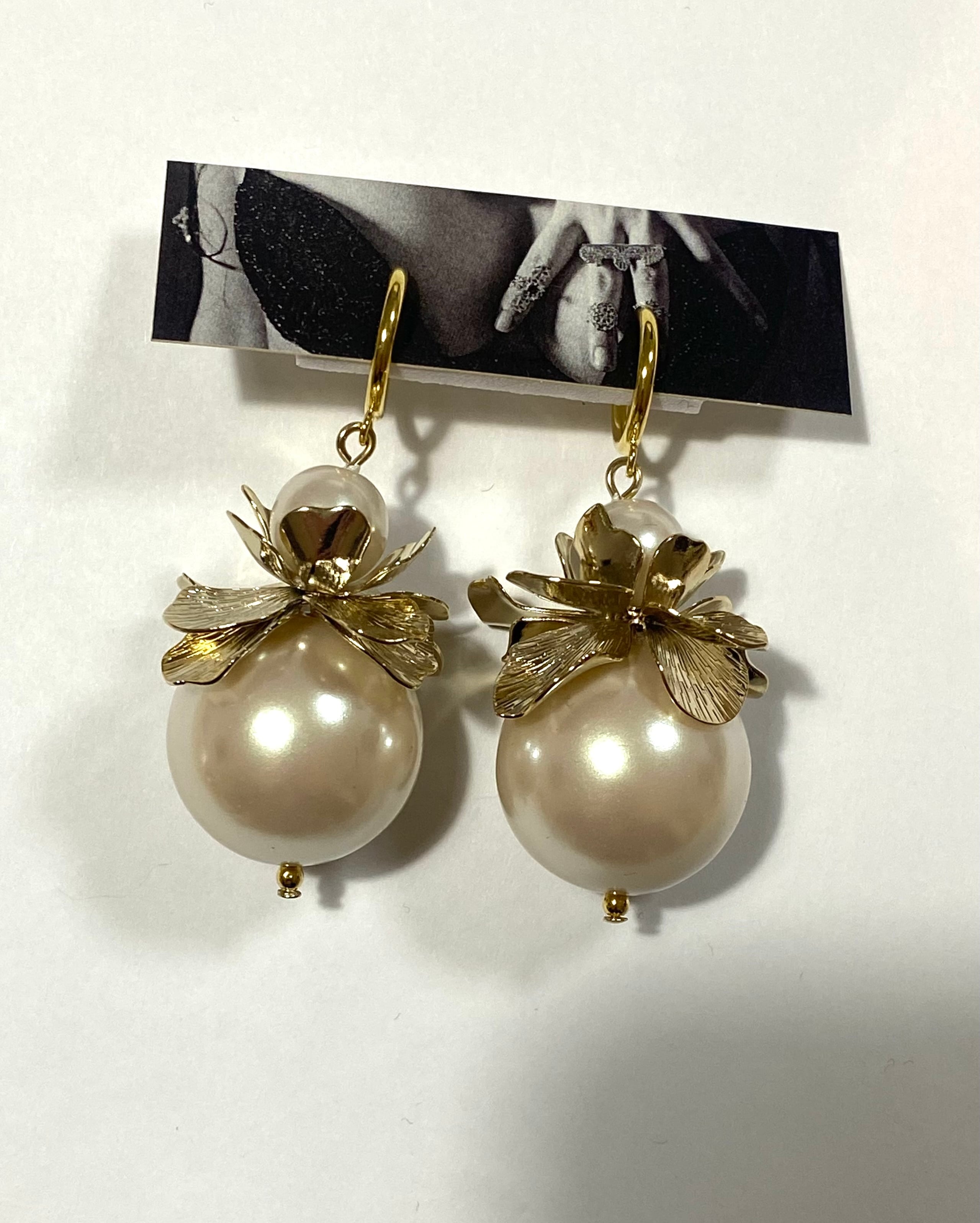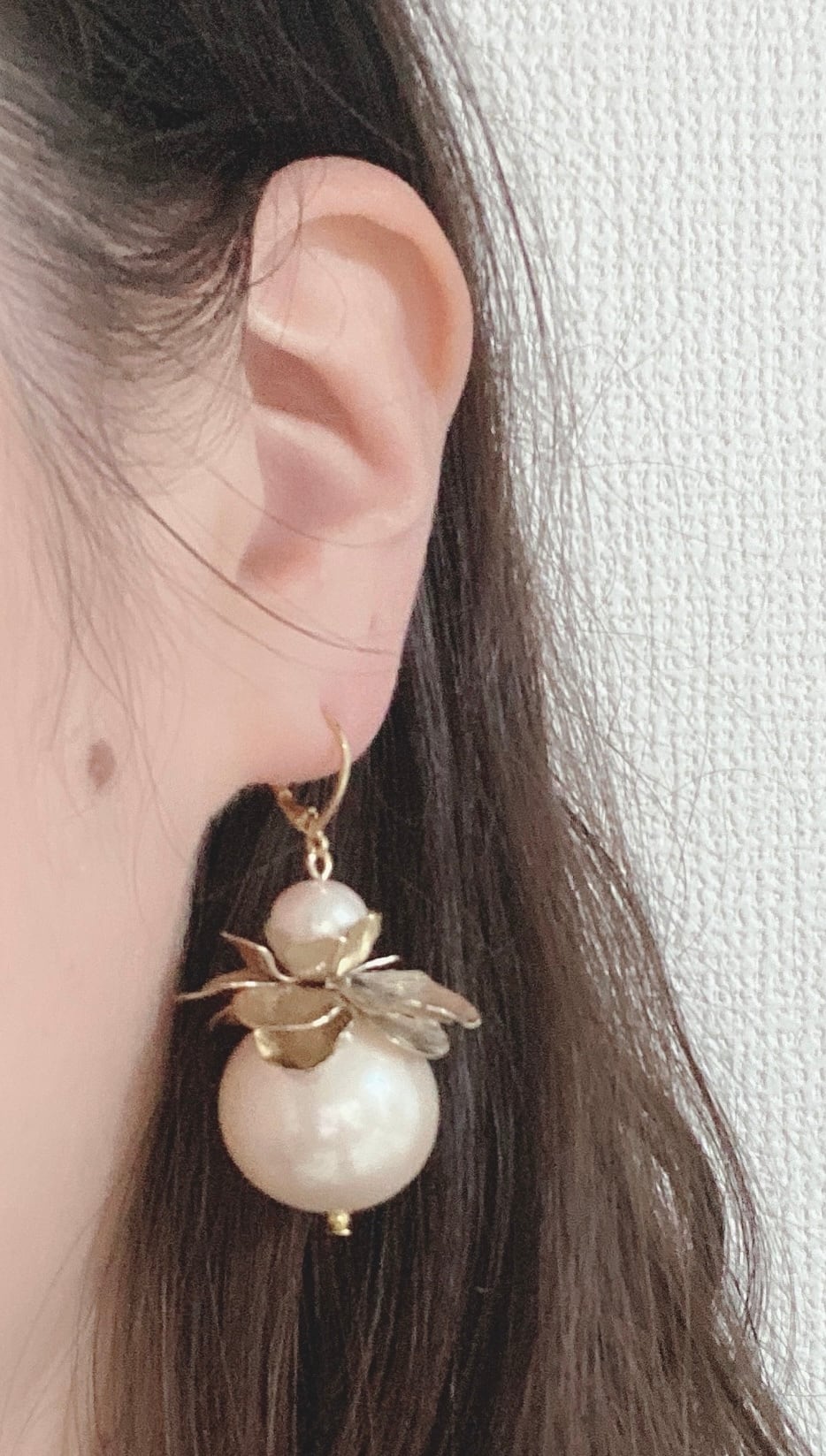 1つずつ手曲げして形を作った花ビラを使用したボリュームある豪華なピアスです。