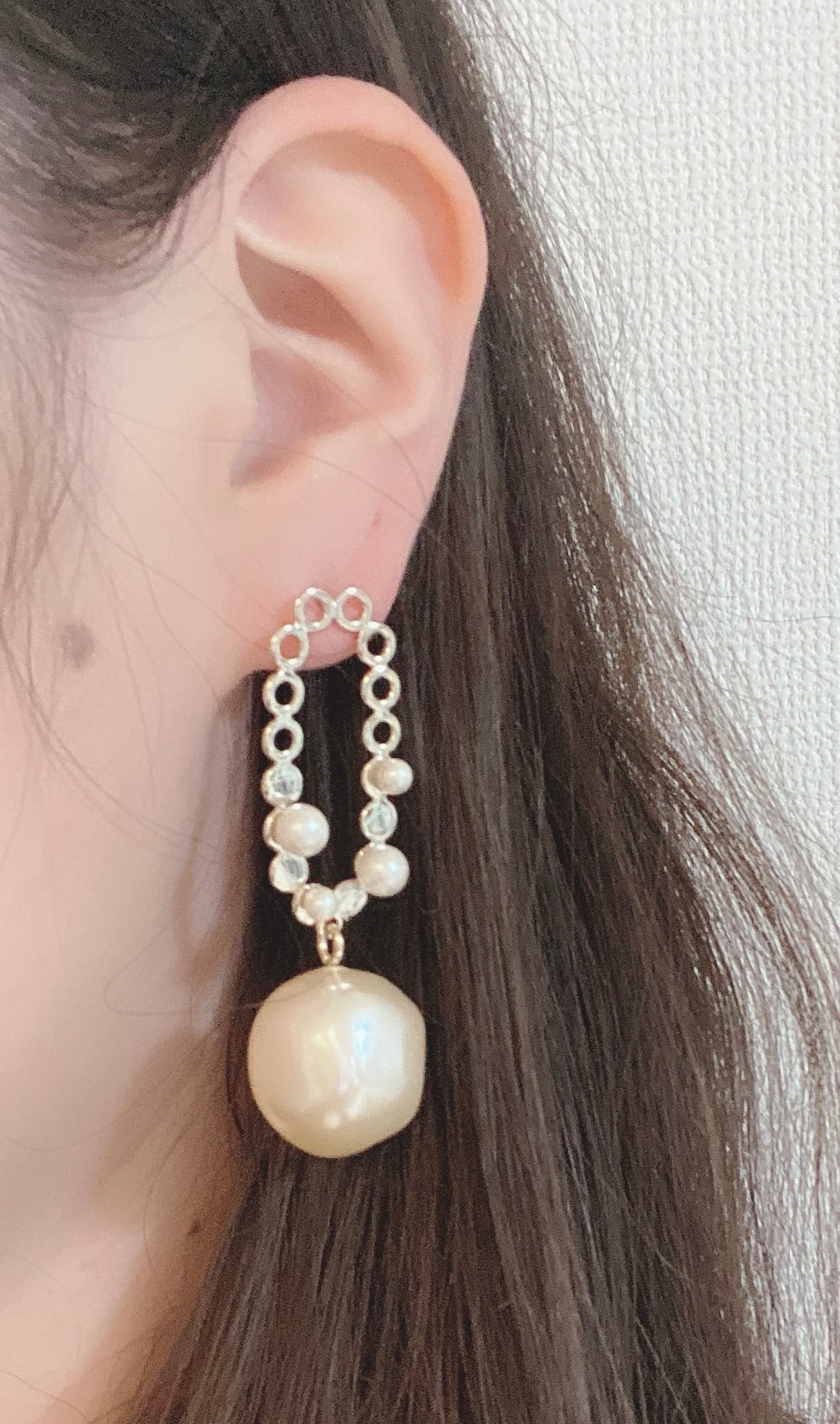 22㎜のバロックパールを使用した大振りカジュアルピアスです。