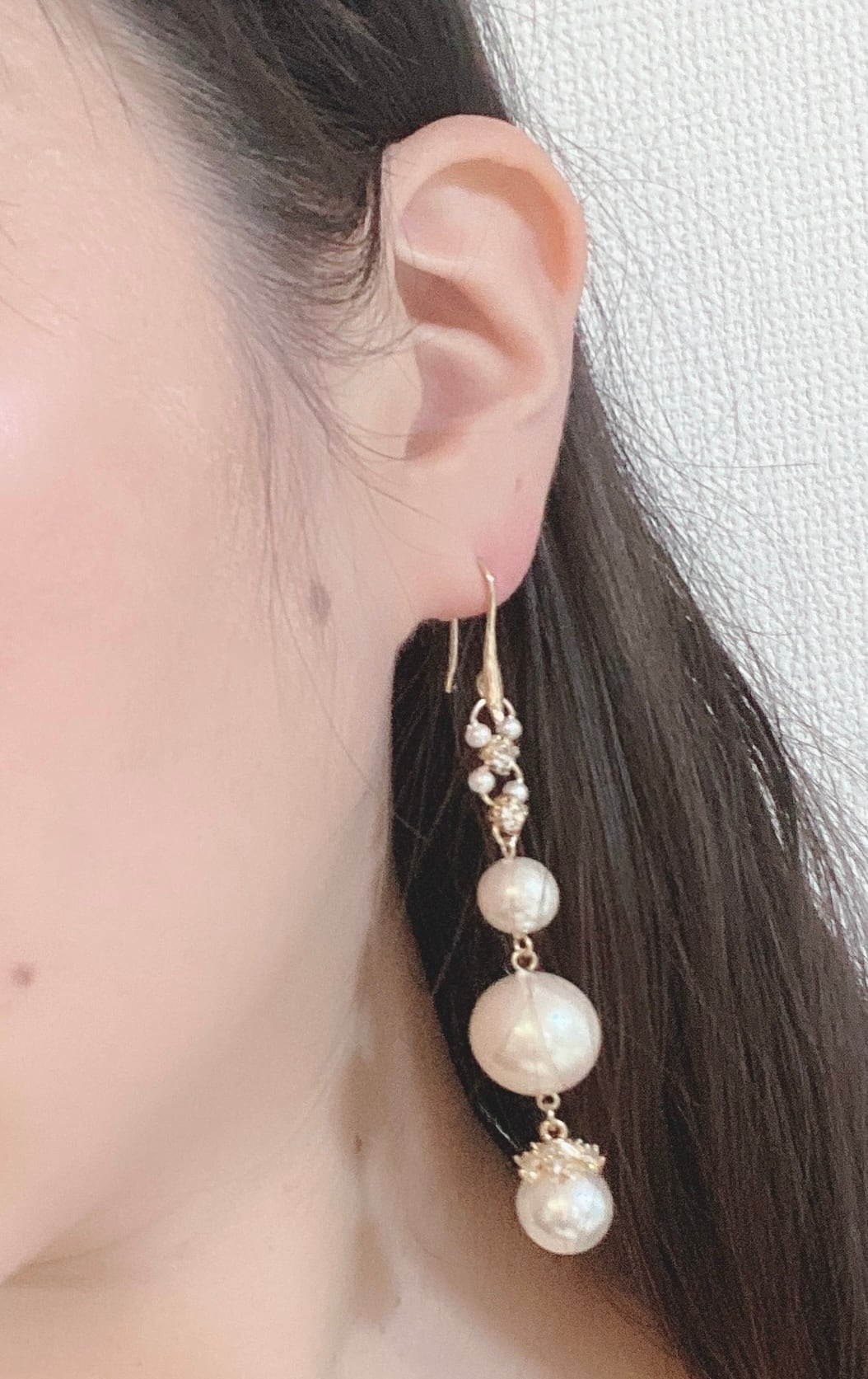 ダイヤレーンパールロングピアス(ペア)