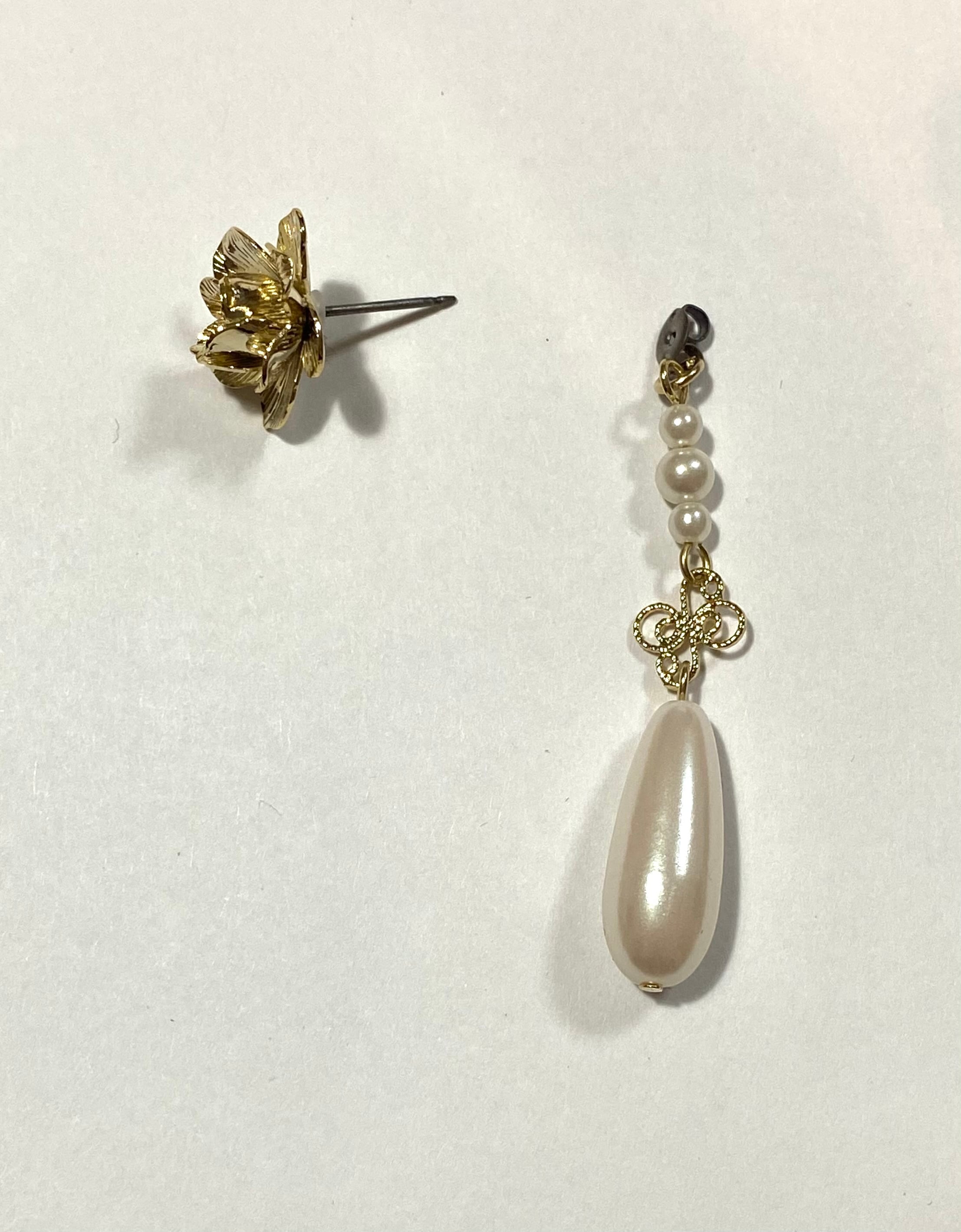 フラワーバドドロップパールポイントピアス(ペア)