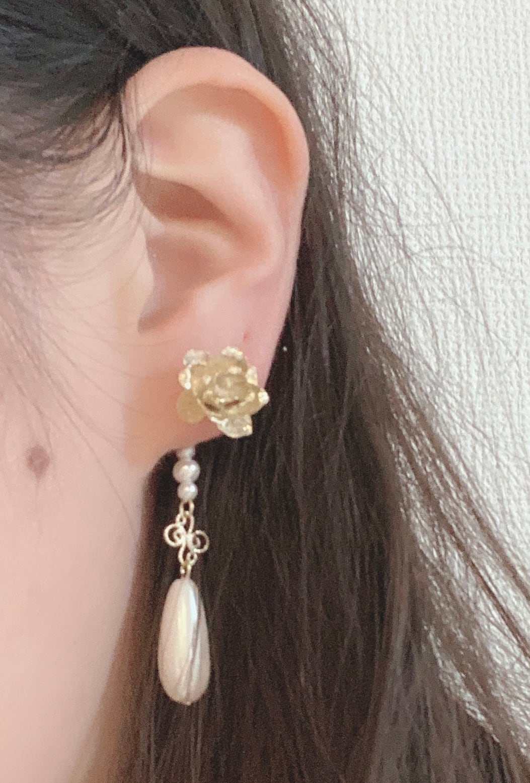 ピアス金具→チタンポスト+真鍮(花部分)+アレルギー対応メッキ+チタンキャッチ