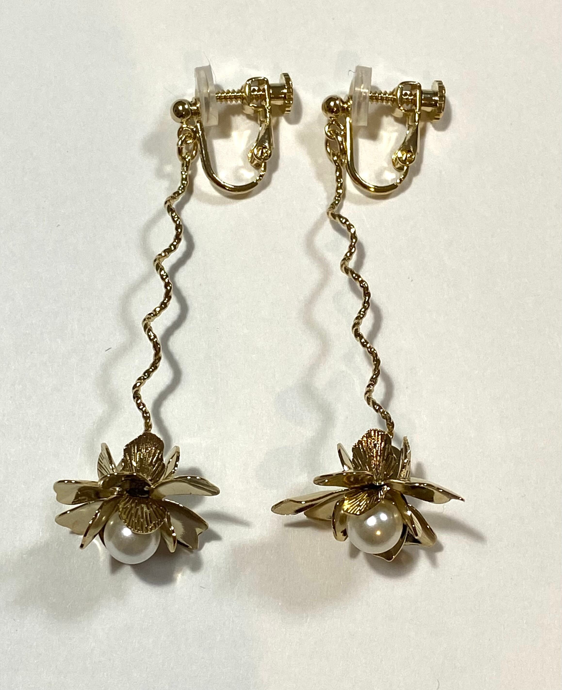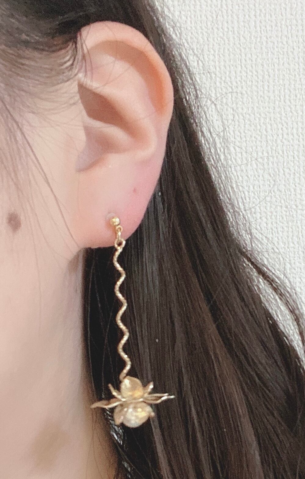 1つずつ手曲げして形を作った花ビラを使用した小ぶりのピアスです。