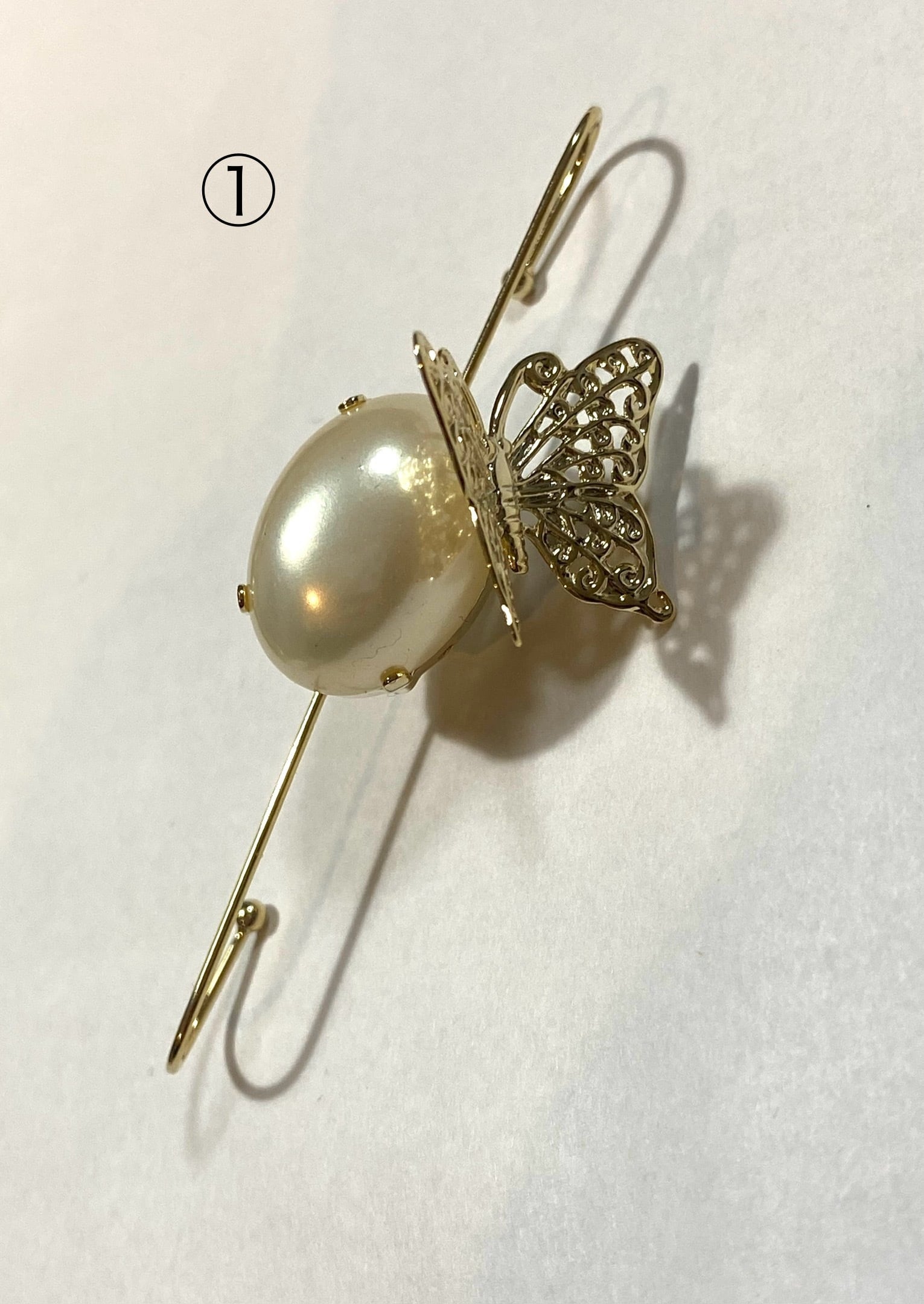 金属部分→真鍮+アレルギー対応メッキ+①樹脂パール+②ガラス
