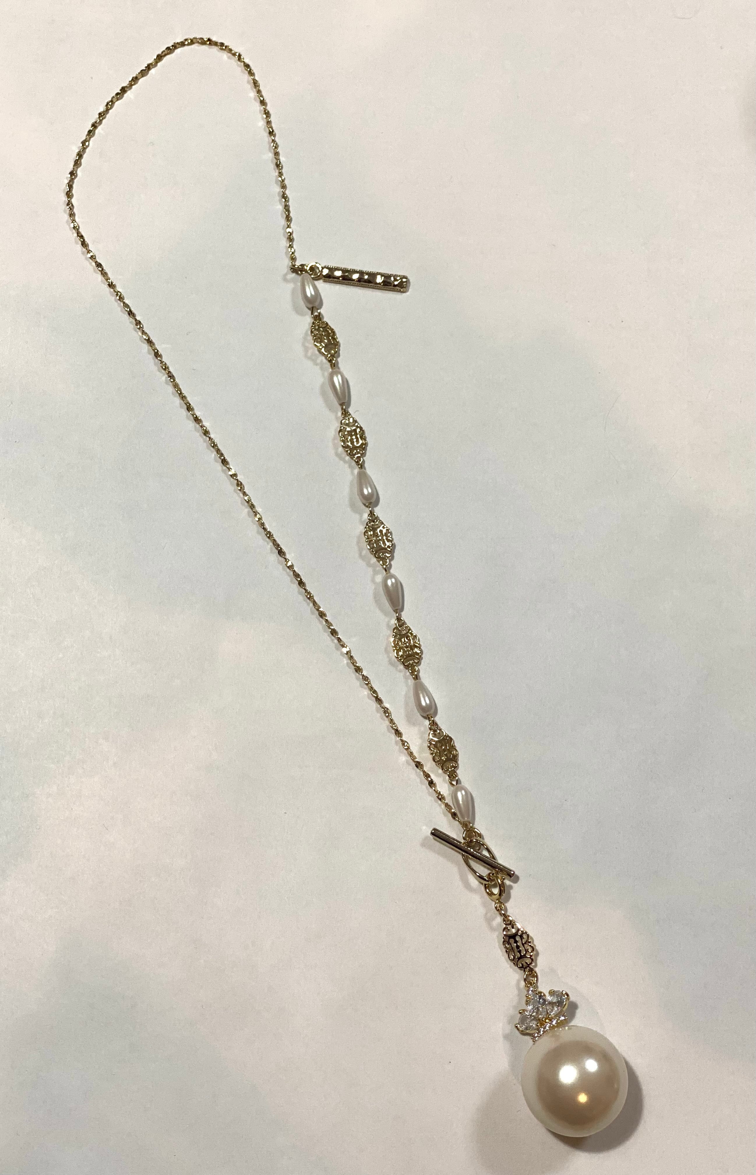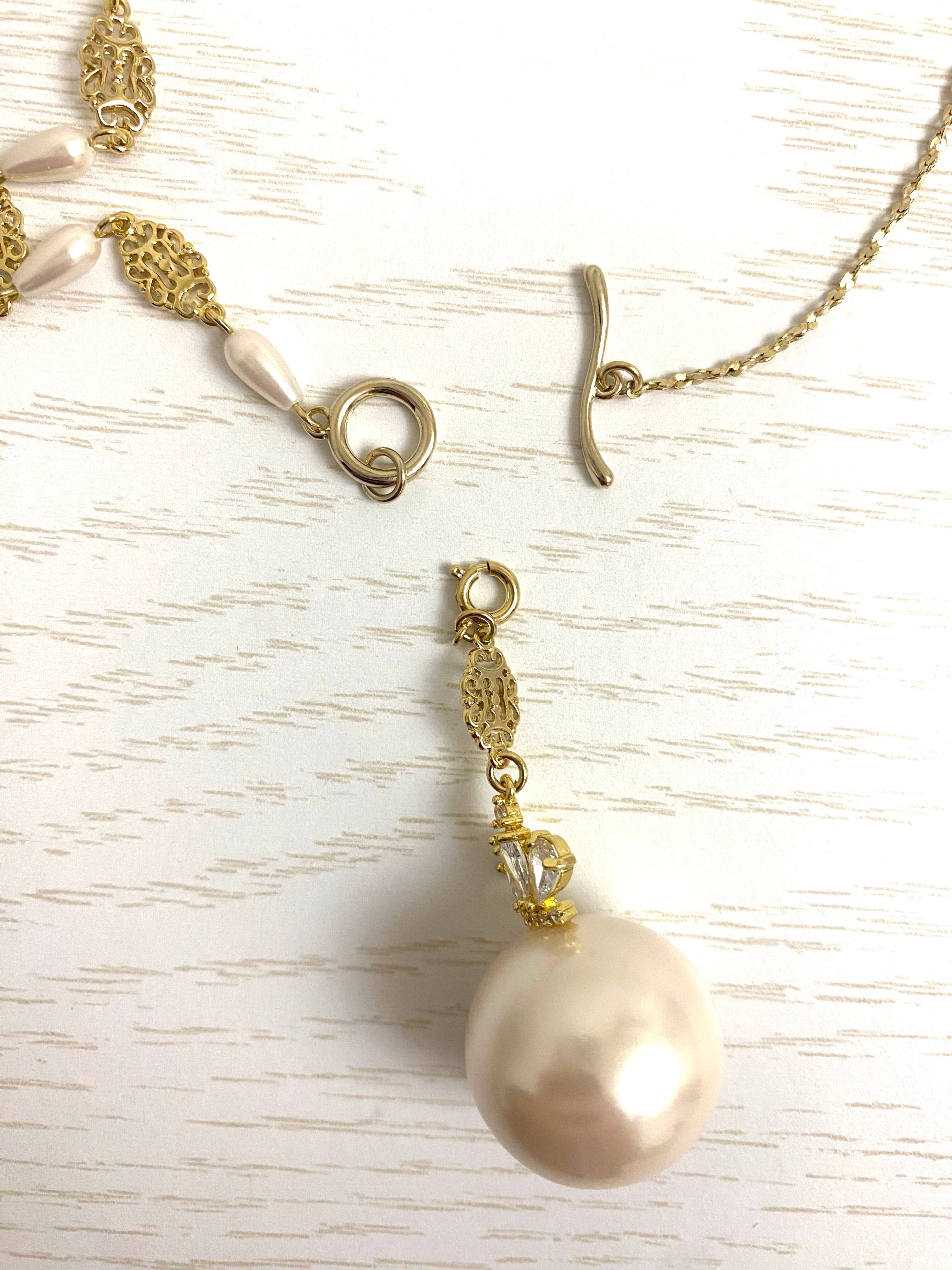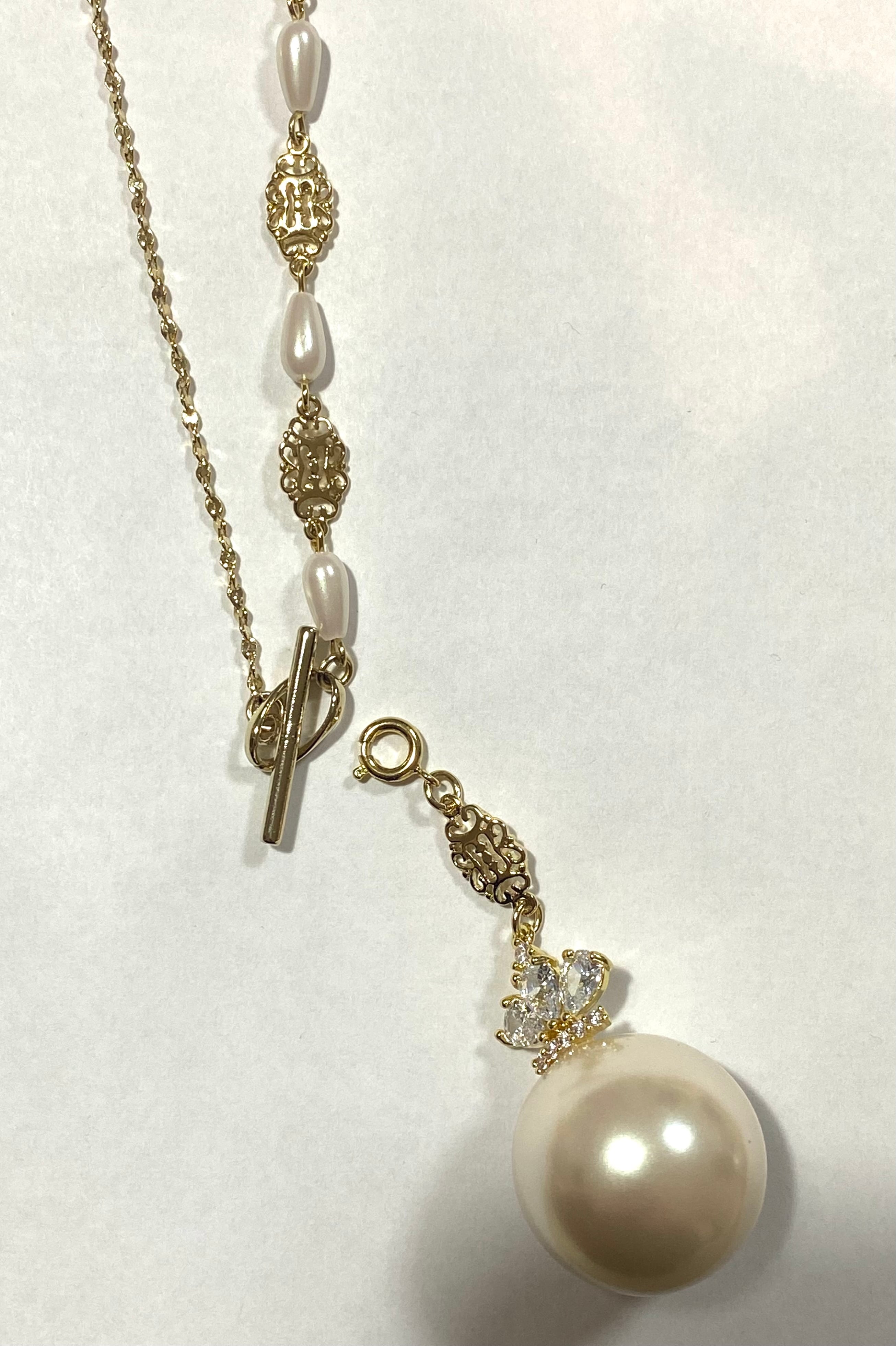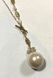 22㎜の大粒パールにティアラが乗った取り外し可能なチャーム付きネックレスです。