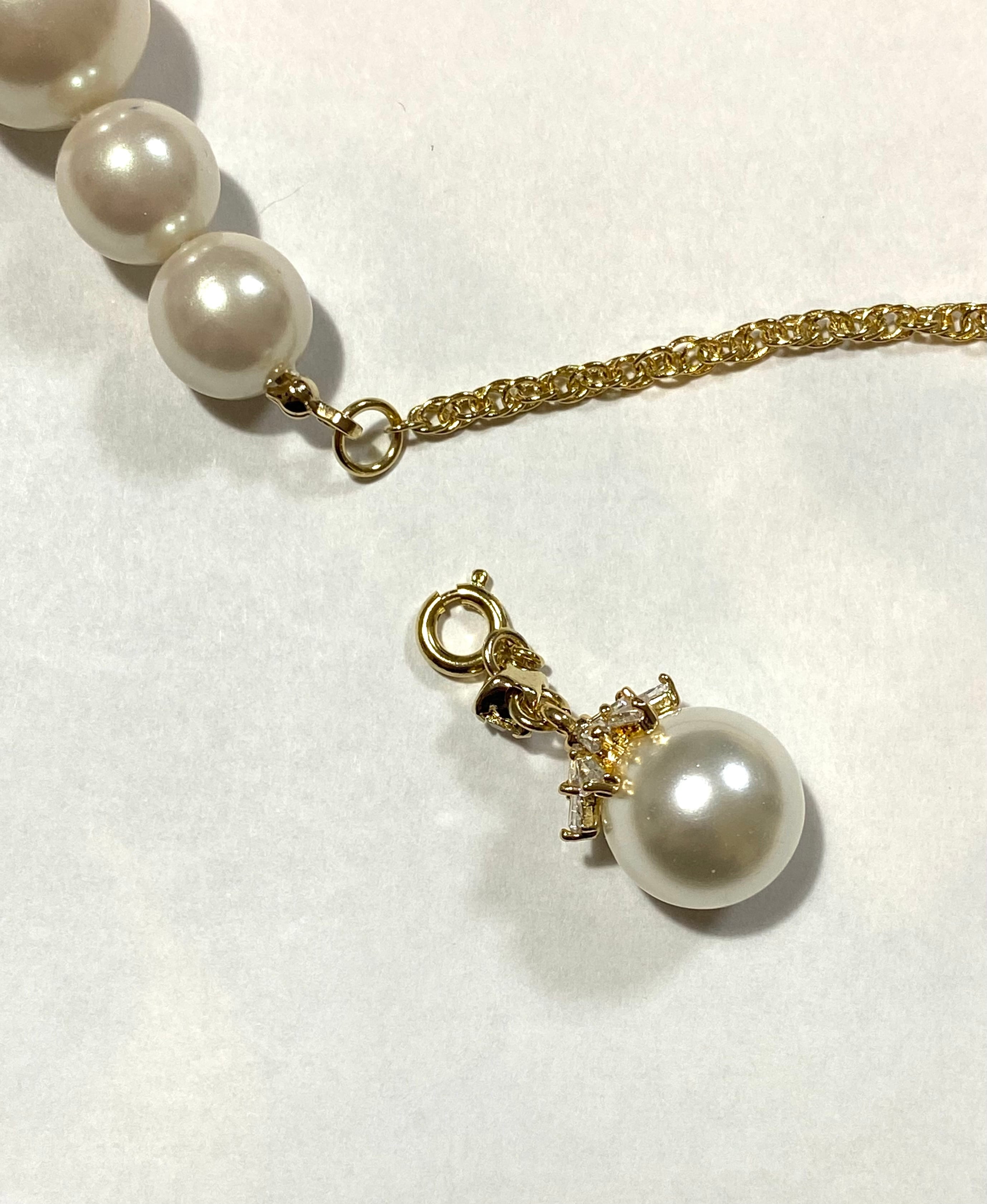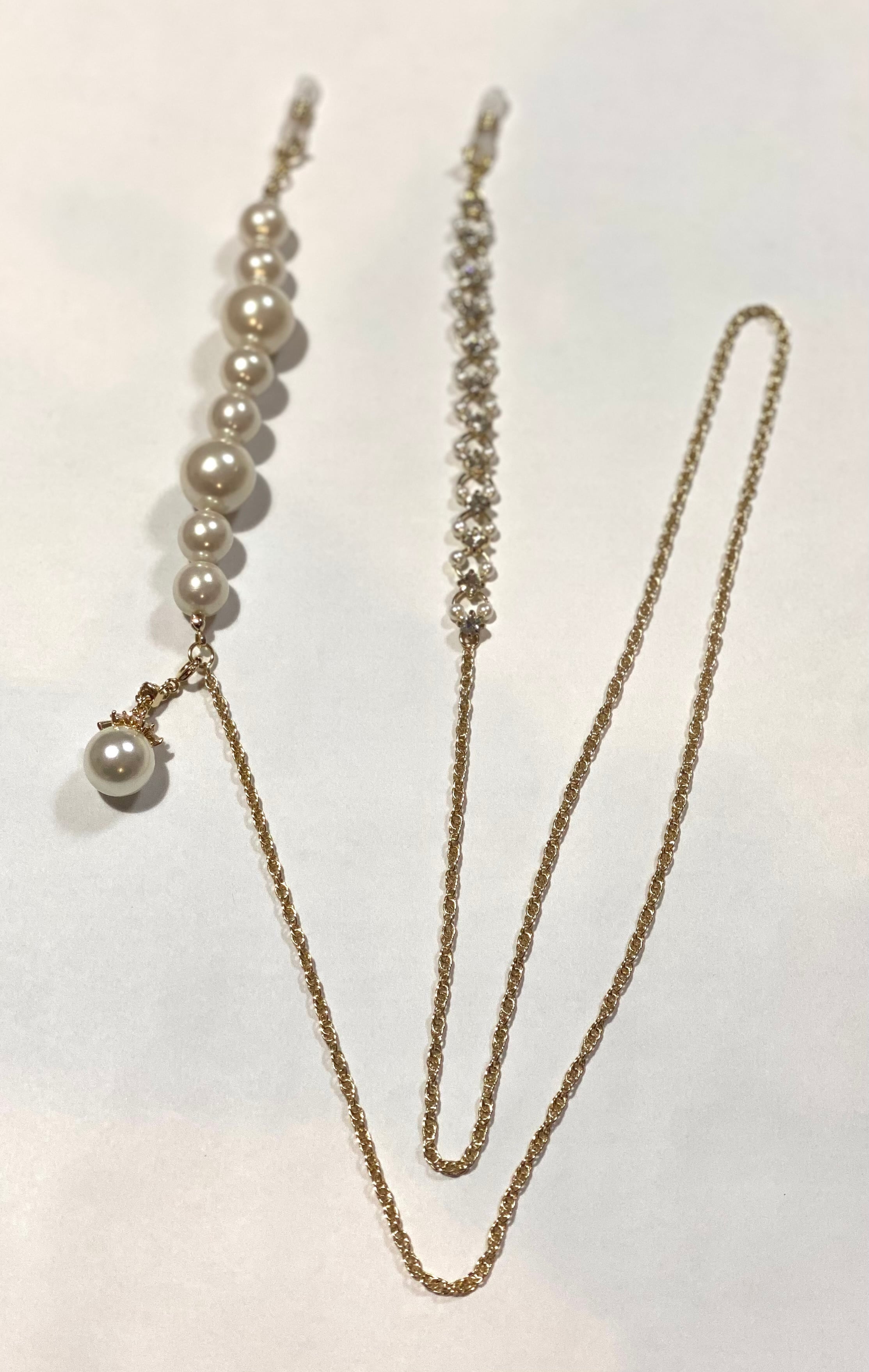 パールにガラスキャップが乗った取り外し可能なチャーム付きグラスチェーンです。