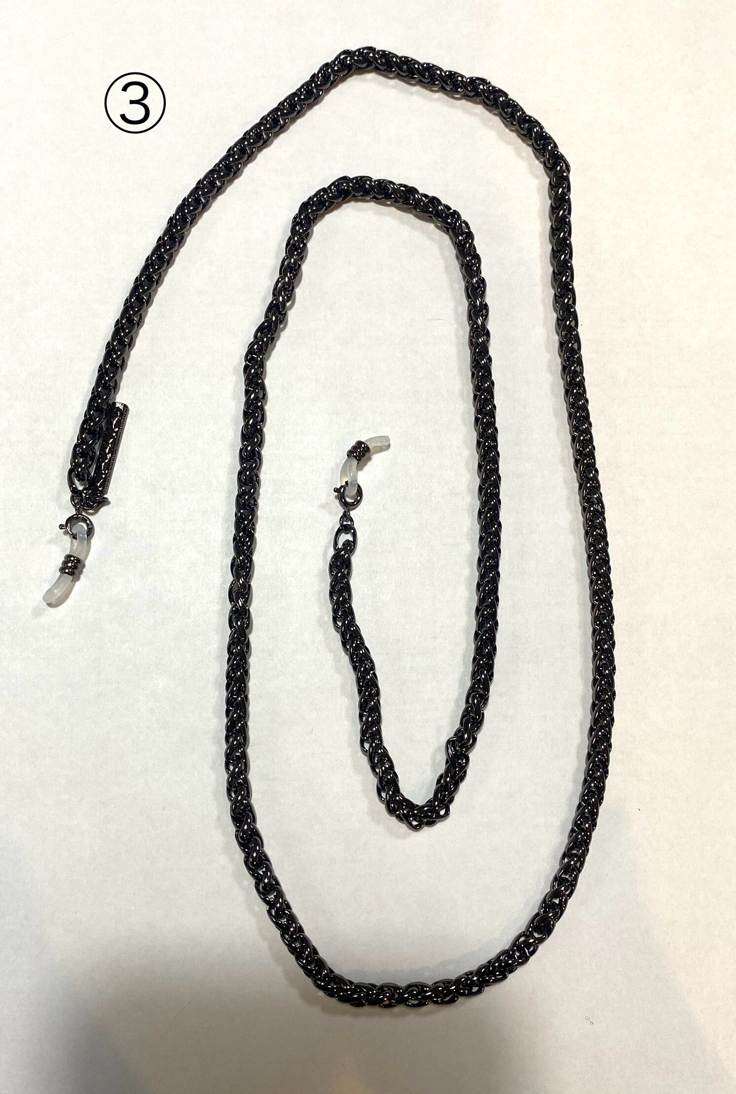 大振りのチェーンを使用した重厚感のあるグラスチェーンです。