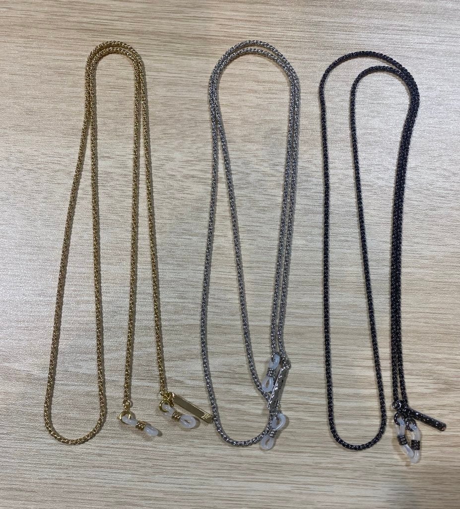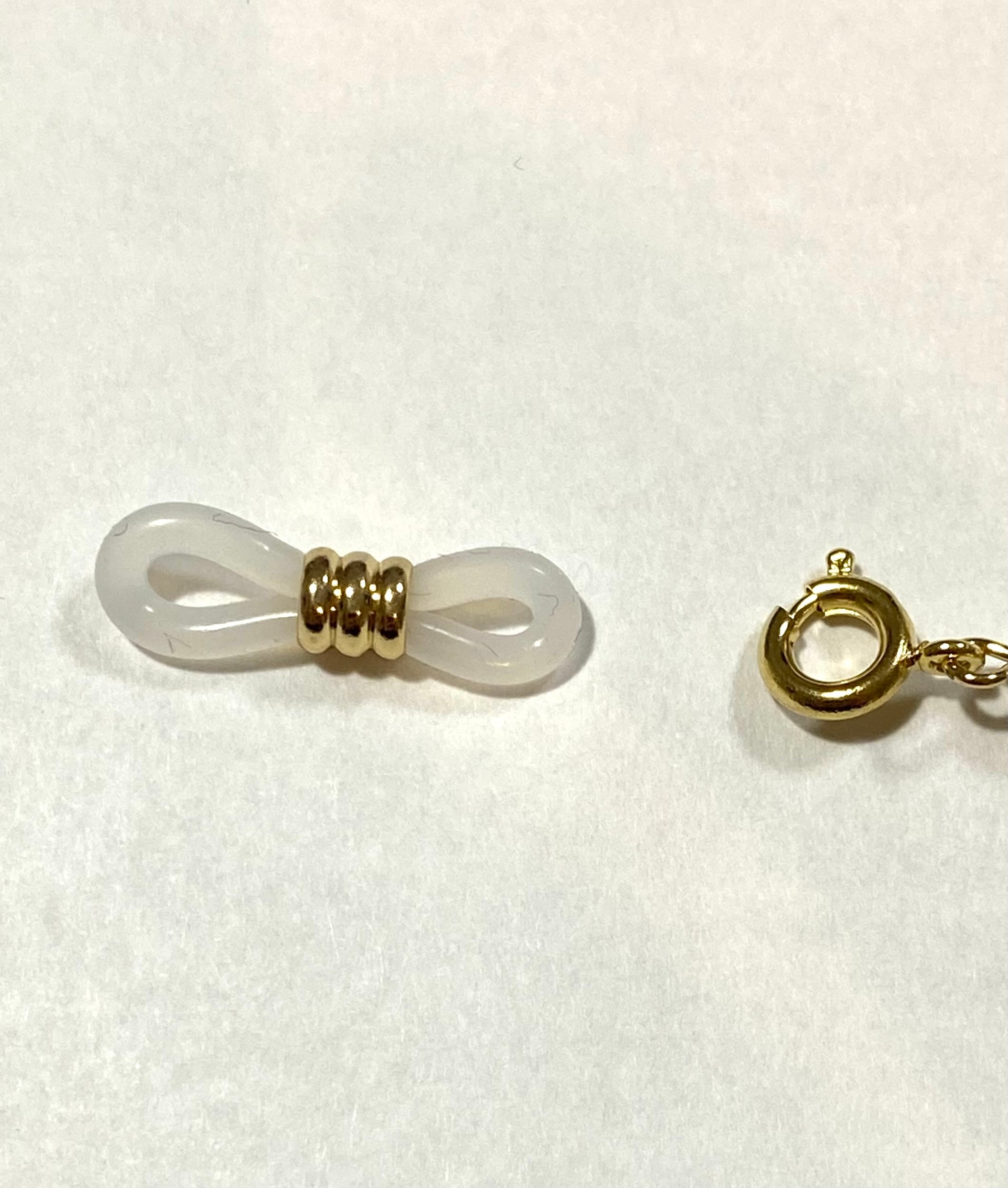 (メッキの厚みや眼鏡ゴムの個体差によっては外し辛い場合もありますので予めご了承ください。特にブラックは引き輪から眼鏡ゴムを抜き入れする際にやりづらく感じる場合がります。)
