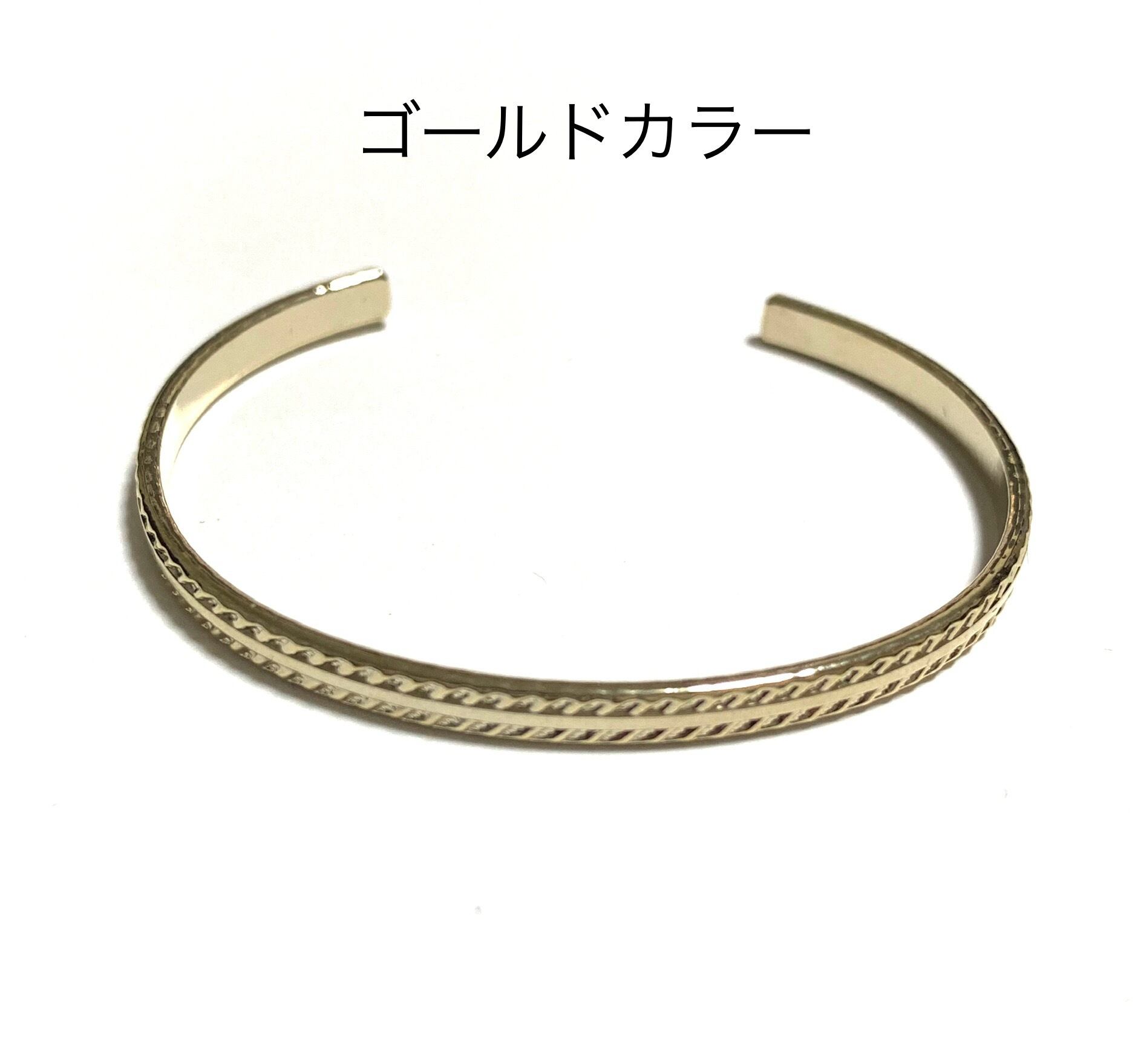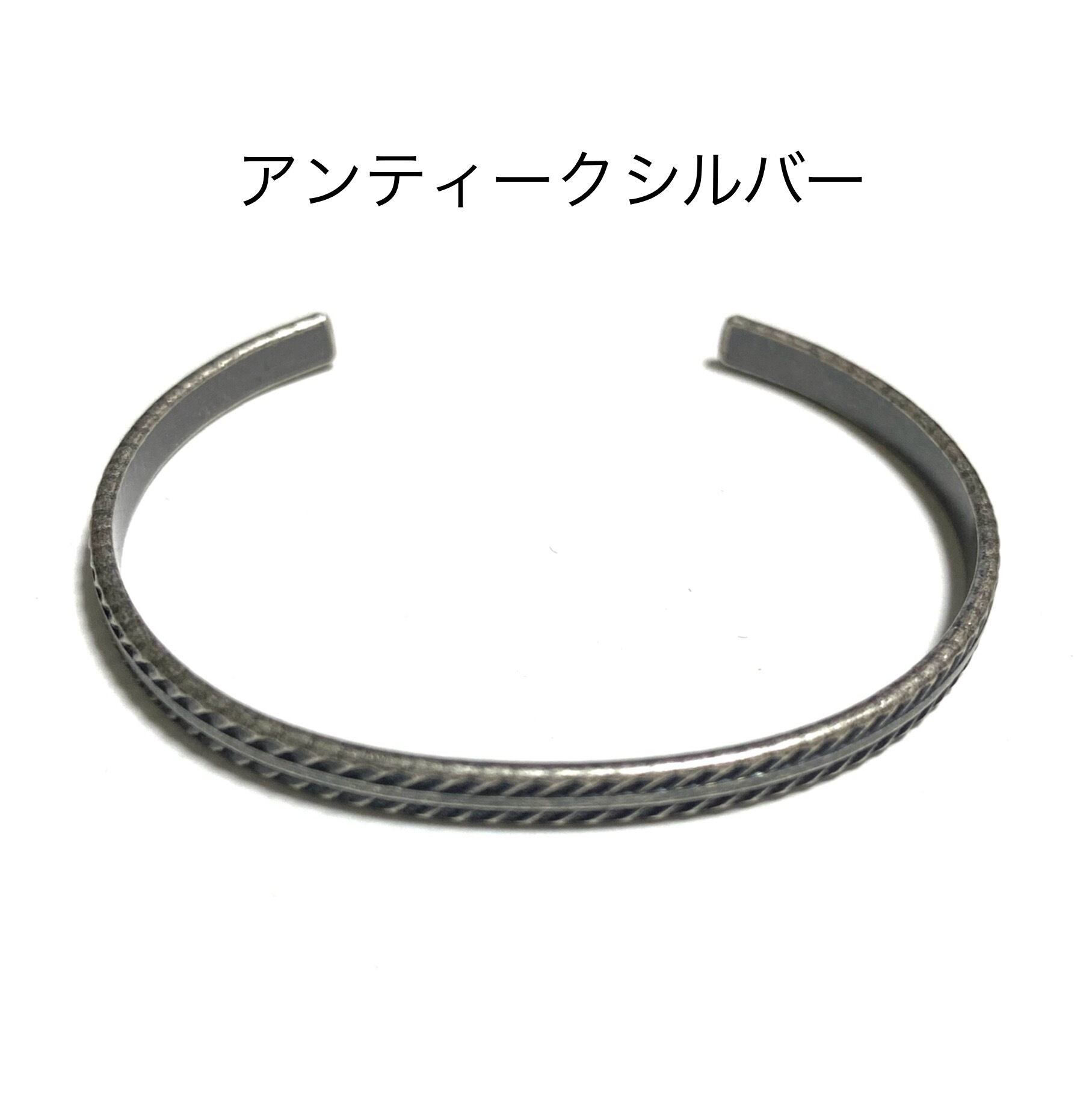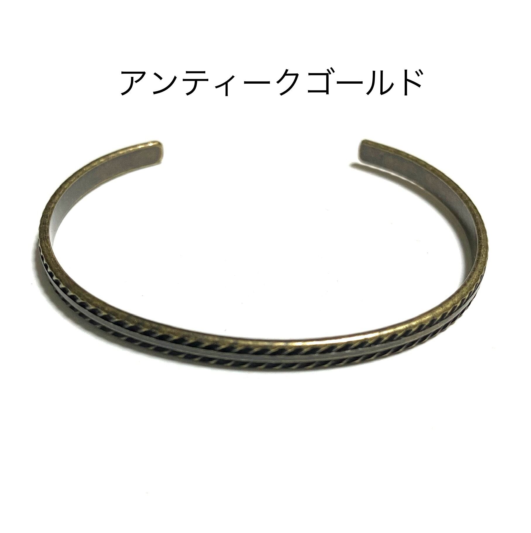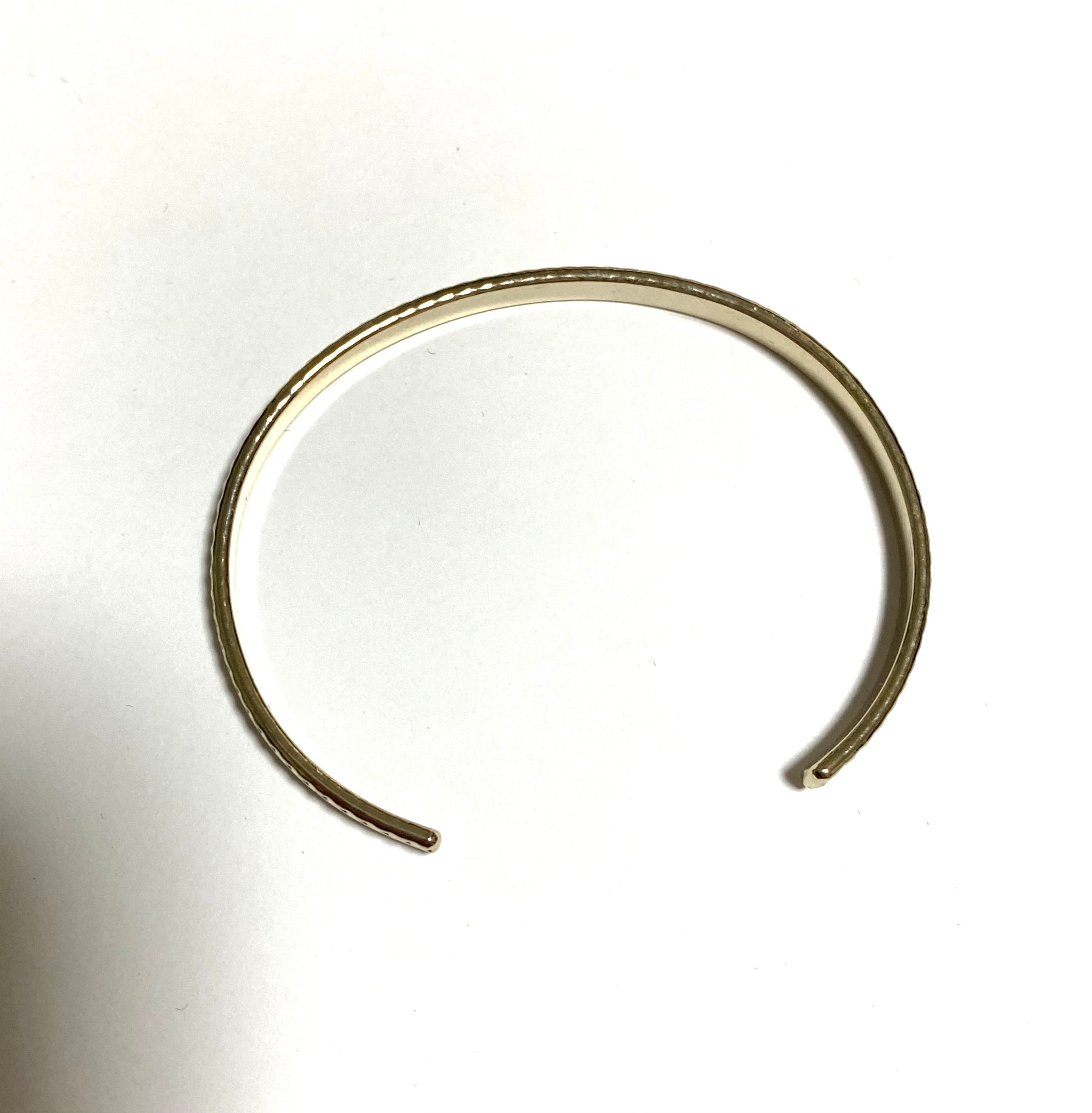 平アラベスク柄の真鍮線を曲げた普段使いや重ね付けに最適なバングルです。