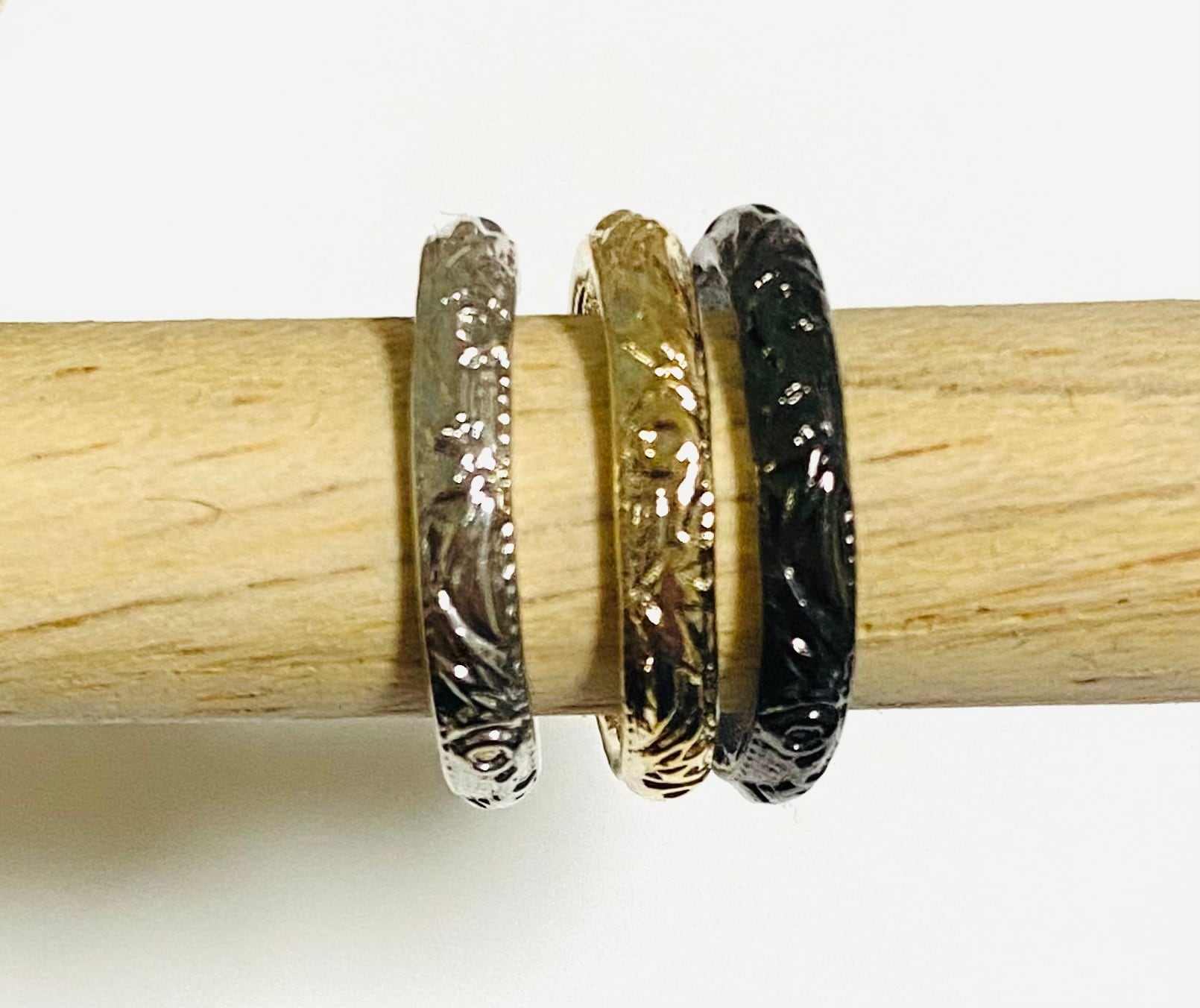 アラベスク柄の真鍮線を曲げた普段使いや重ね付けに最適なリングです。