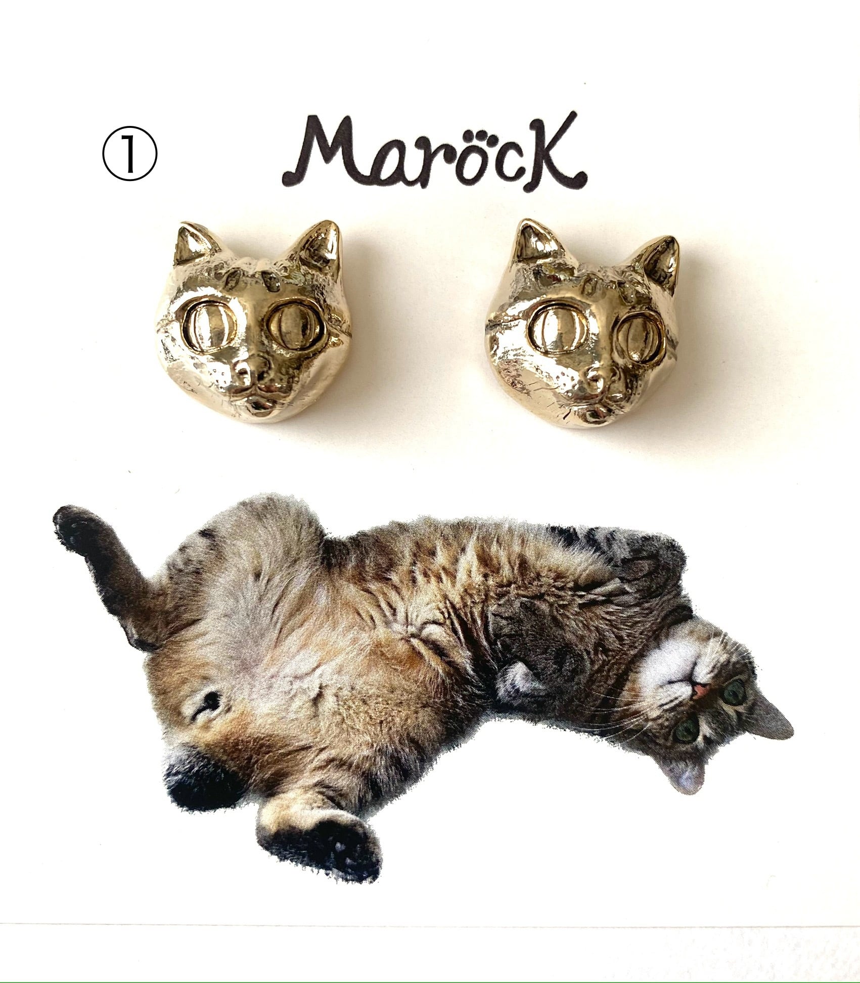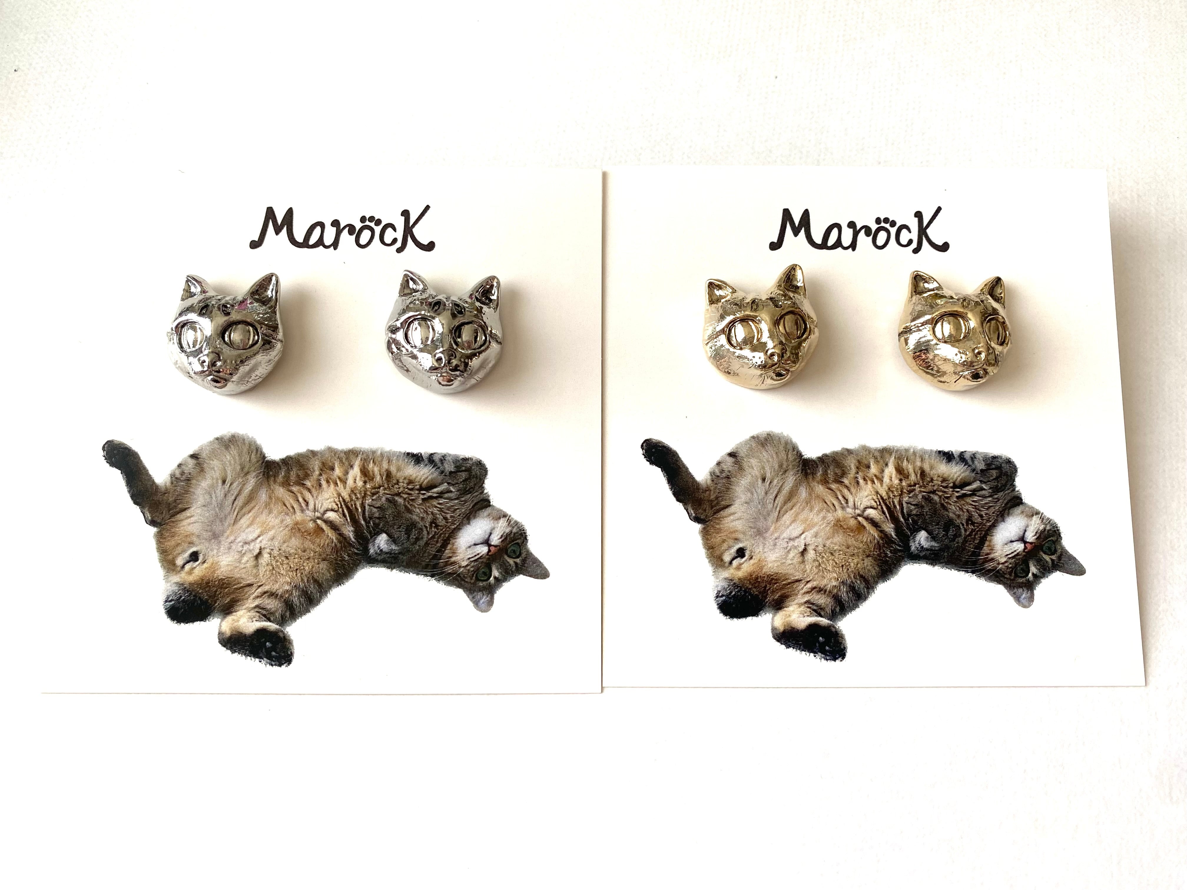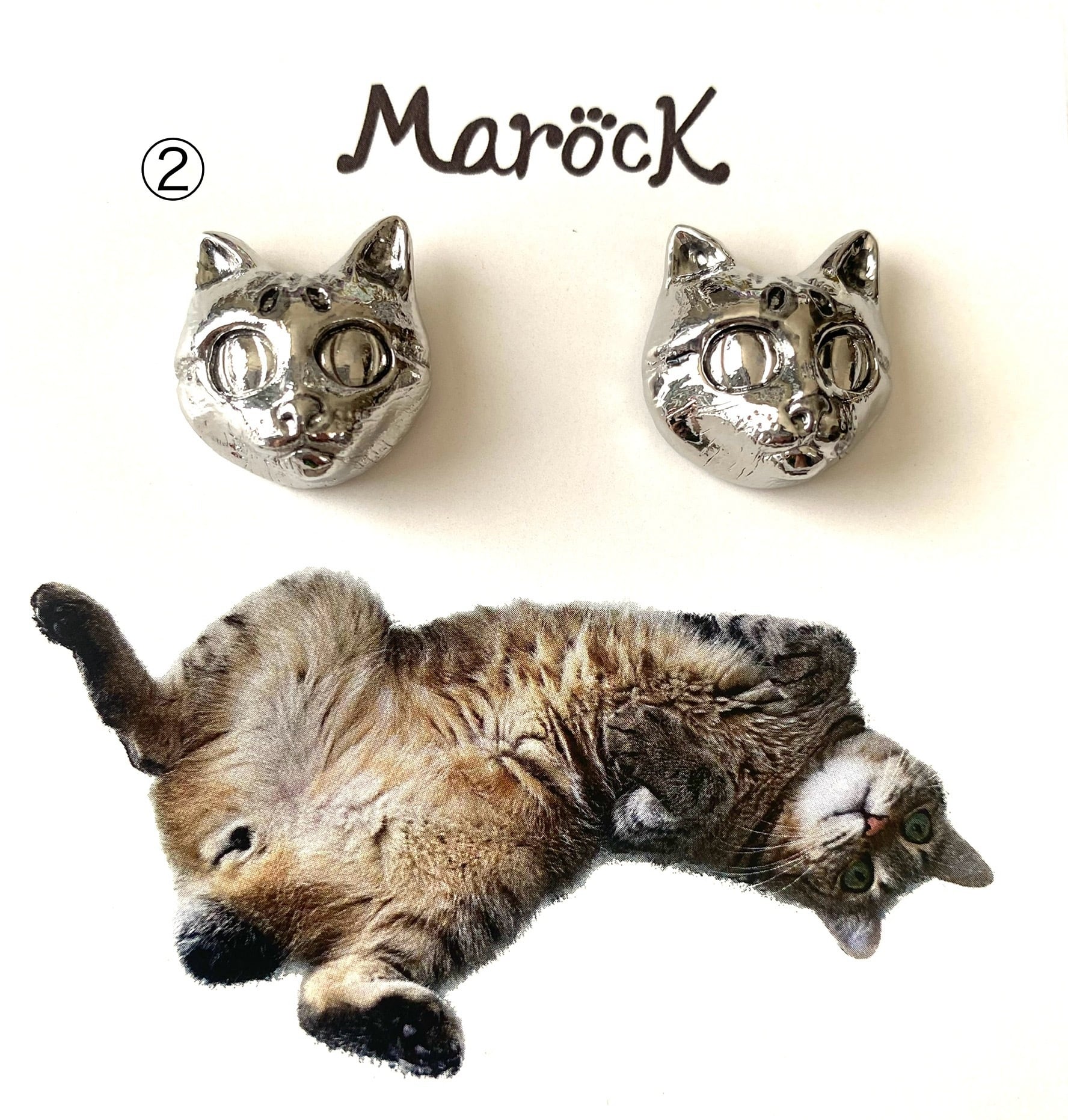 我が家のアイドル顔面偏差値天才SSRハイパープリティ猫のまろっく様のご尊顔をデフォルメさせていただいたオリジナルデザインのピアス(ペア)です。